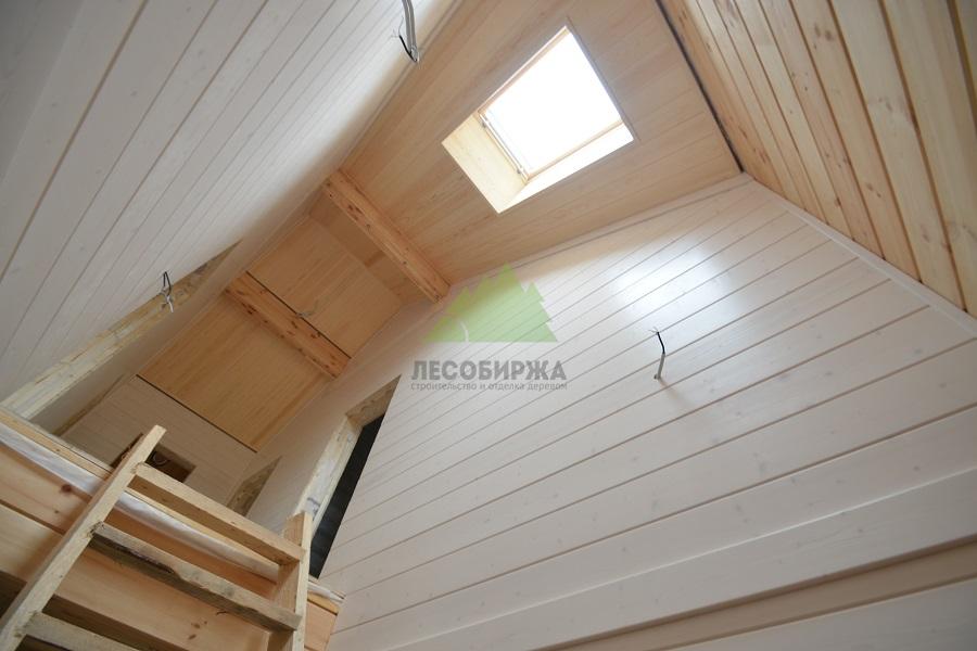 Здесь специалистами «ЛесоБиржа», рассматривается момент профессионального монтажа, когда происходит установка уже заранее окрашенных панелей имитации бруса. Предварительная экспертная окраска — это неотъемлемая часть правильных отделочных работ. Этот алгоритм мы отработали в течении 10 лет, при отделке каркасных домов. Внутренняя отделка брусом там применялась не однократно.