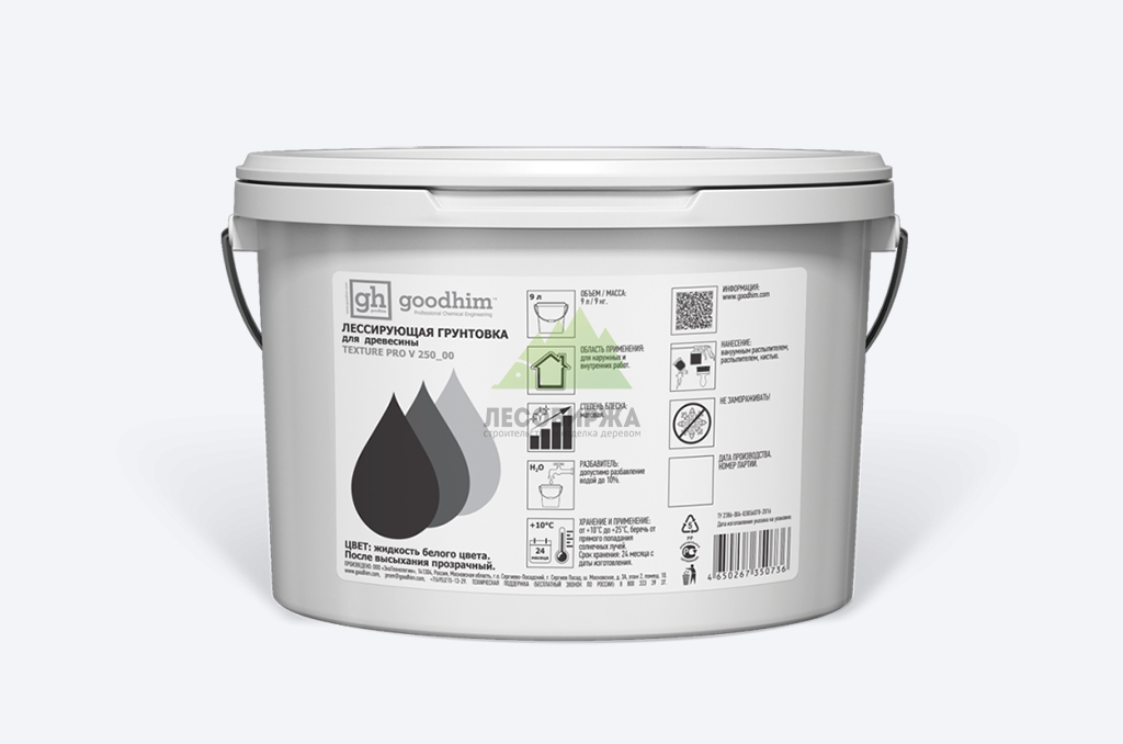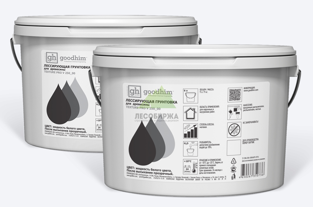 Представляем лессирующую грунтовку GOODHIM TEXTURE PRO V 250_00 — идеальное декоративное покрытие для древесины, которое не только преображает внешний вид деревянных поверхностей, но и обеспечивает им надежную защиту. Этот продукт разработан для глубокого проникновения в структуру дерева, подчеркивая его естественную красоту и оберегая от неблагоприятных атмосферных воздействий.