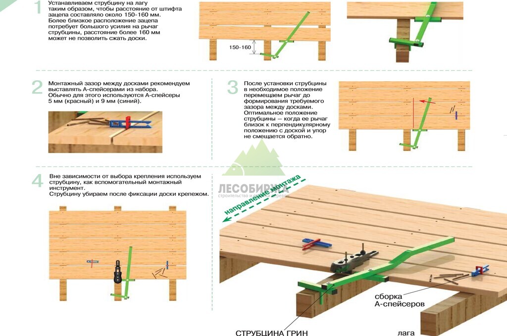 - Точные зазоры: Для формирования идеального монтажного зазора используйте Струбцину ГРИН в тандеме с А-спейсерами. Это обеспечит аккуратный и профессиональный вид готового пола.