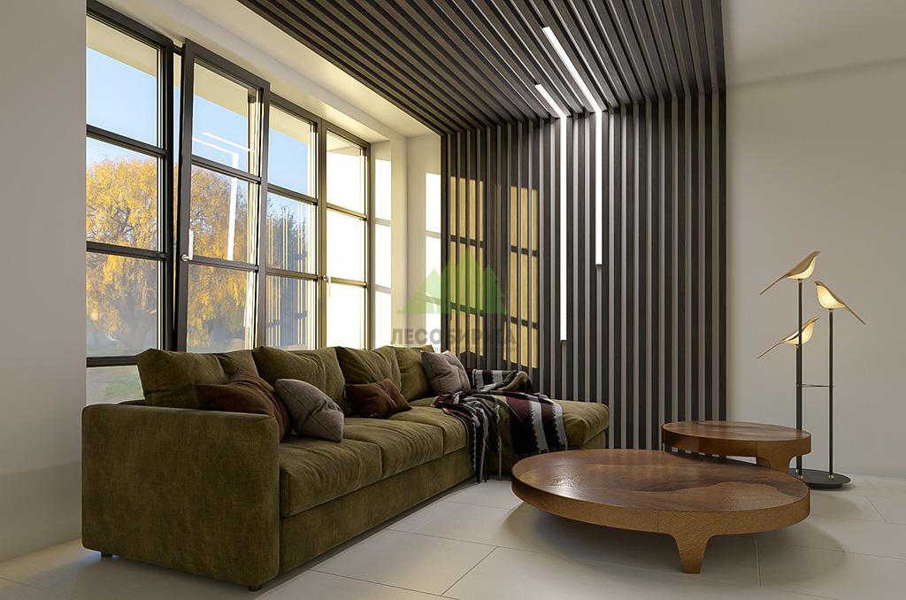 Декоративные сосновые рейки из мебельного щита, это прекрасный способ провести деликатное зонирование или расставить акценты в образе вашего дома. Разместив их за рабочим столом, и над ним, с переходом на потолок, вы сможете получить осознанное ощущение настоящего кабинета, при этом вам не будет необходимости отгораживаться ширмой. Психологический комфорт и отчетливое чувство уединения за работой, вам гарантировано.