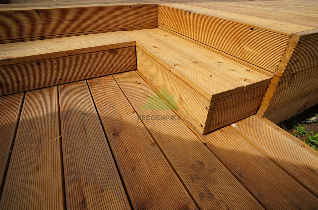 - Простота ухода за террасой: Правильно установленная и обработанная террасная доска из лиственницы требует минимального ухода, сохраняя свою привлекательность и функциональность.