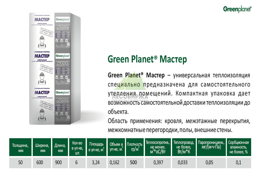 Утеплитель Green Planet Мастер — это современный теплоизоляционный материал, предназначенный для эффективного энергосбережения в частных домах и коммерческих зданиях. Благодаря своим оптимальным размерам 600х50х900 мм он удобен в транспортировке и монтаже, обеспечивая минимальное количество отходов при раскрое.
