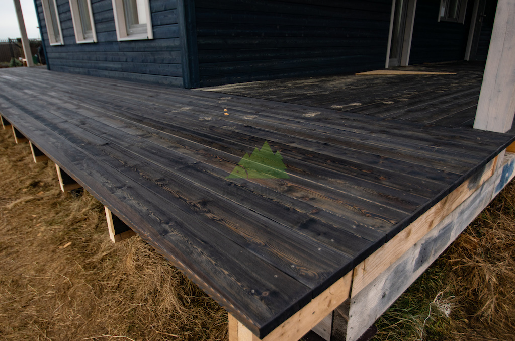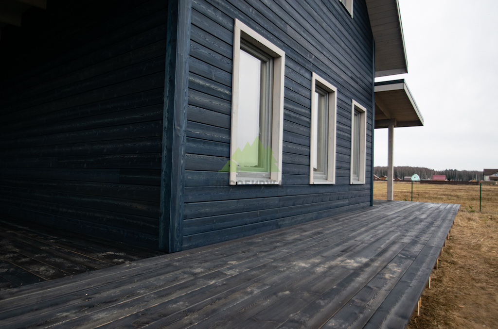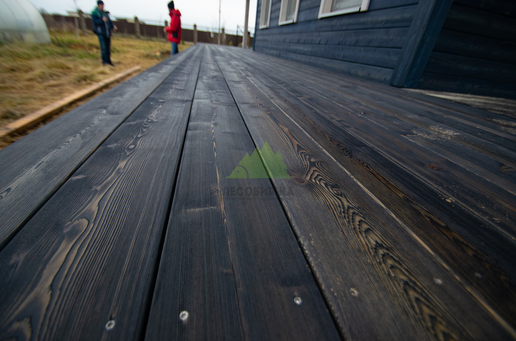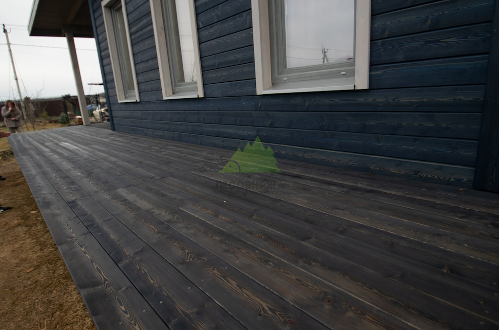 Когда работы по фасаду были завершены, и семья приехала оценить результат в Ромашкинских усадьбах, их восторг был лучшей наградой для нашей команды. Особенно эмоционально отреагировала хозяйка, не скрывая своего восхищения преобразившимся домом. Сдержанное, но крепкое мужское рукопожатие главы семьи говорило красноречивее любых слов. Удовлетворение было настолько велико, что прямо на объекте поступил новый заказ! Клиенты захотели, чтобы их терраса также приобрела благородный вид состаренной древесины. Мы с радостью взялись за работу, ведь для нас нет лучшего показателя качества, чем доверие и повторные обращения. Для террасы была выбрана брашированная террасная доска из лиственницы сорта ВС размером 140х28 мм. Весь процесс брашировки и нанесения финишного покрытия – гидромасла Renner YS M300 (цвет TV-43+150гр), идеально подобранного под уже выполненный фасад, – также проходил в стенах нашей мастерской. Наши специалисты вновь продемонстрировали своё мастерство, попав точно в "яблочко" с выбором оттенка и степенью брашировки. Результат превзошел все ожидания, создав гармоничный и завершенный ансамбль дома и прилегающей террасы.