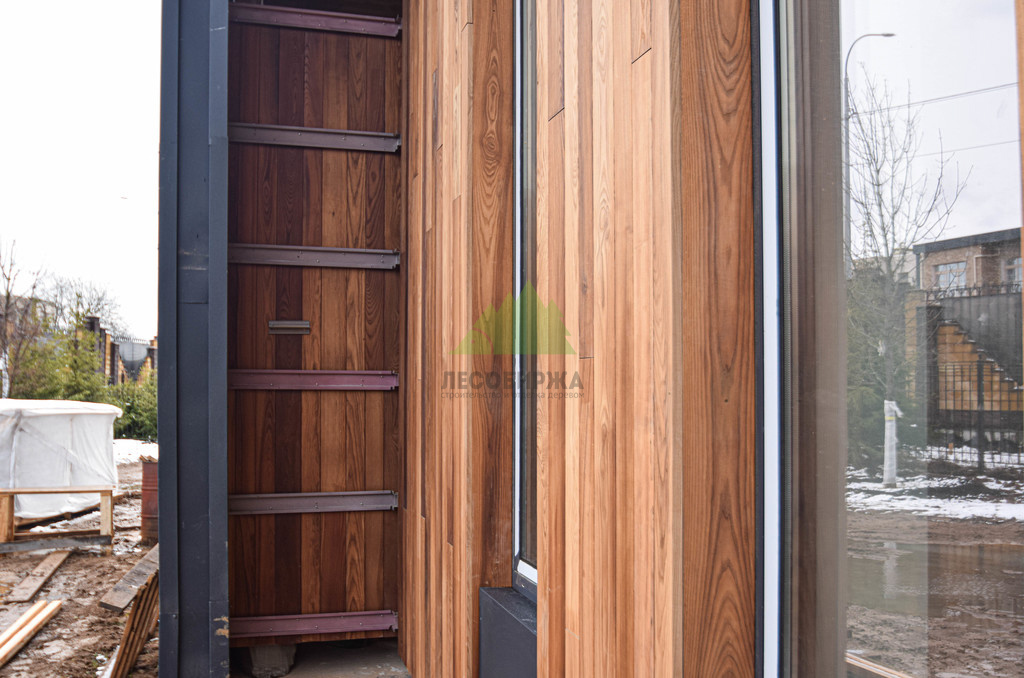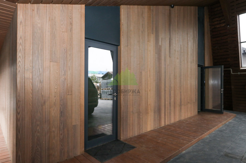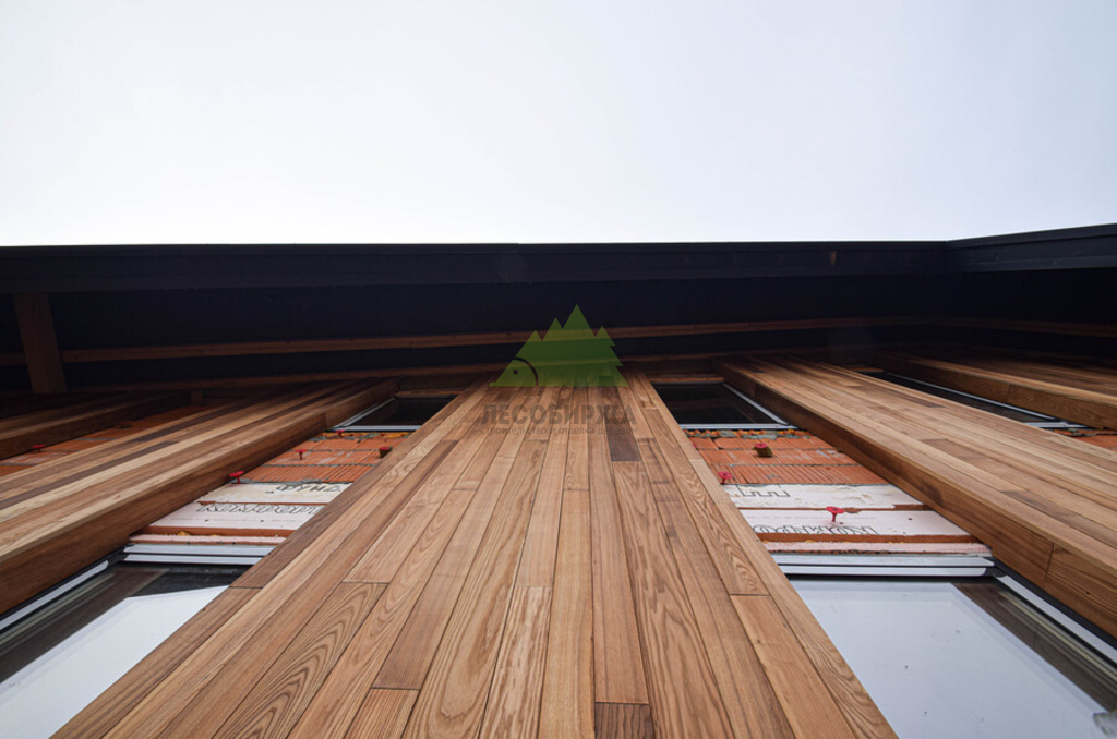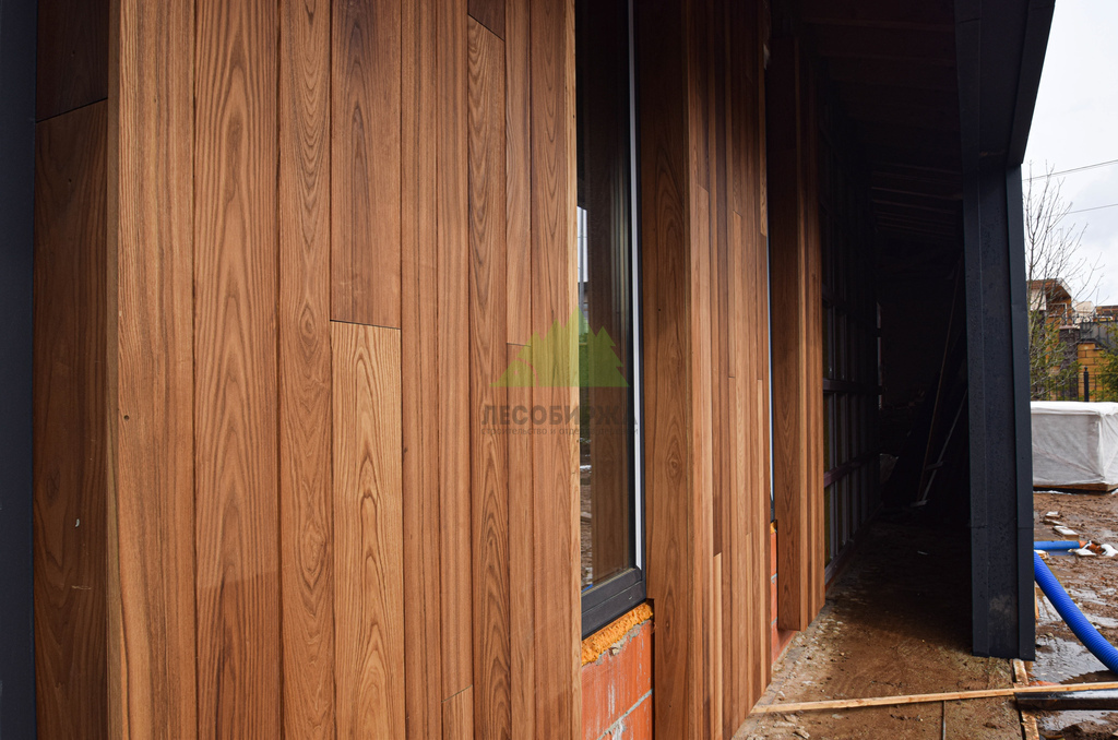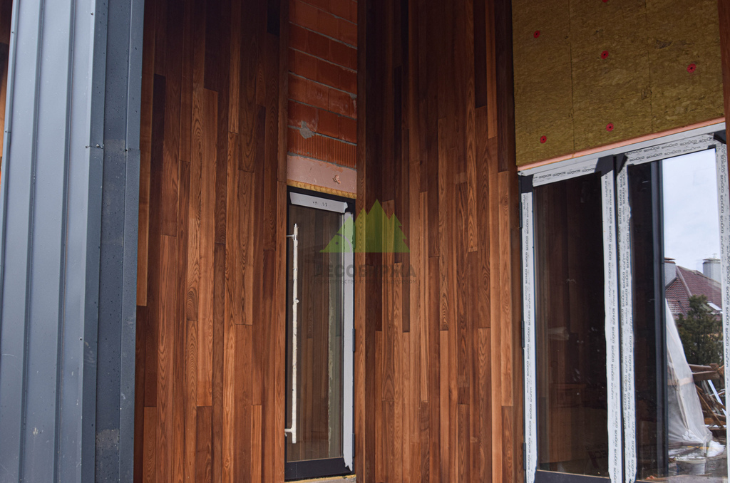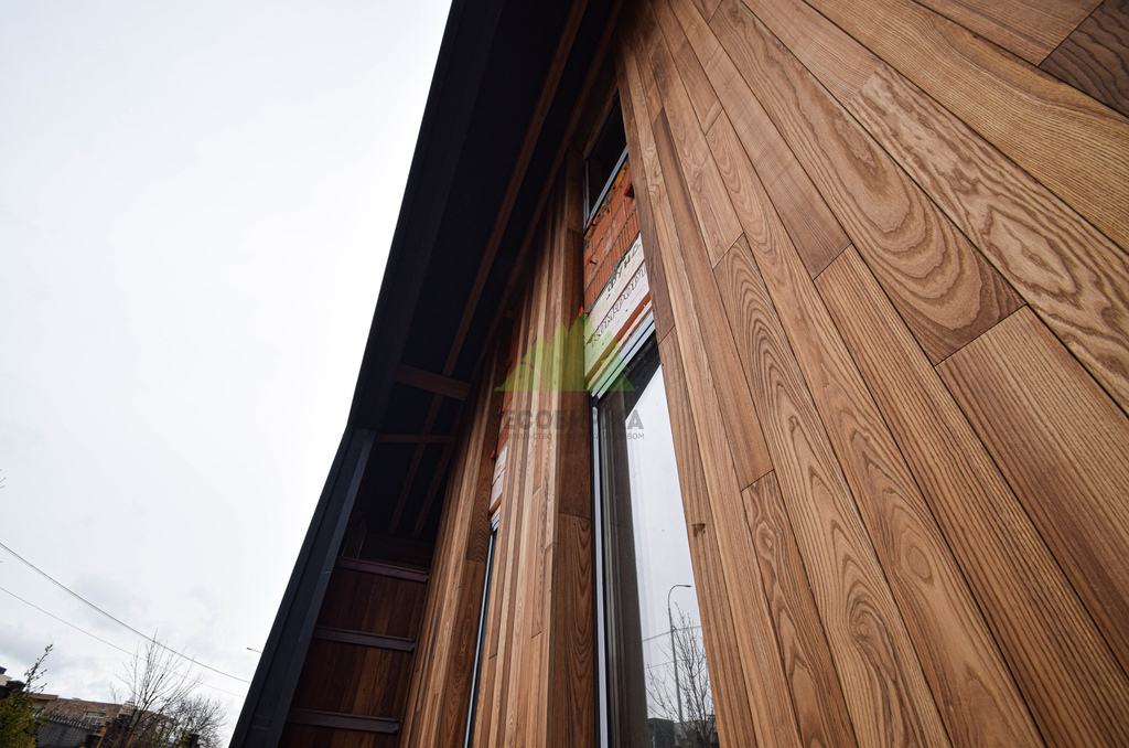 - Долговечность. Срок службы фасада из термоясеня значительно превосходит показатели обычной древесины, что является выгодной инвестицией в будущее дома.