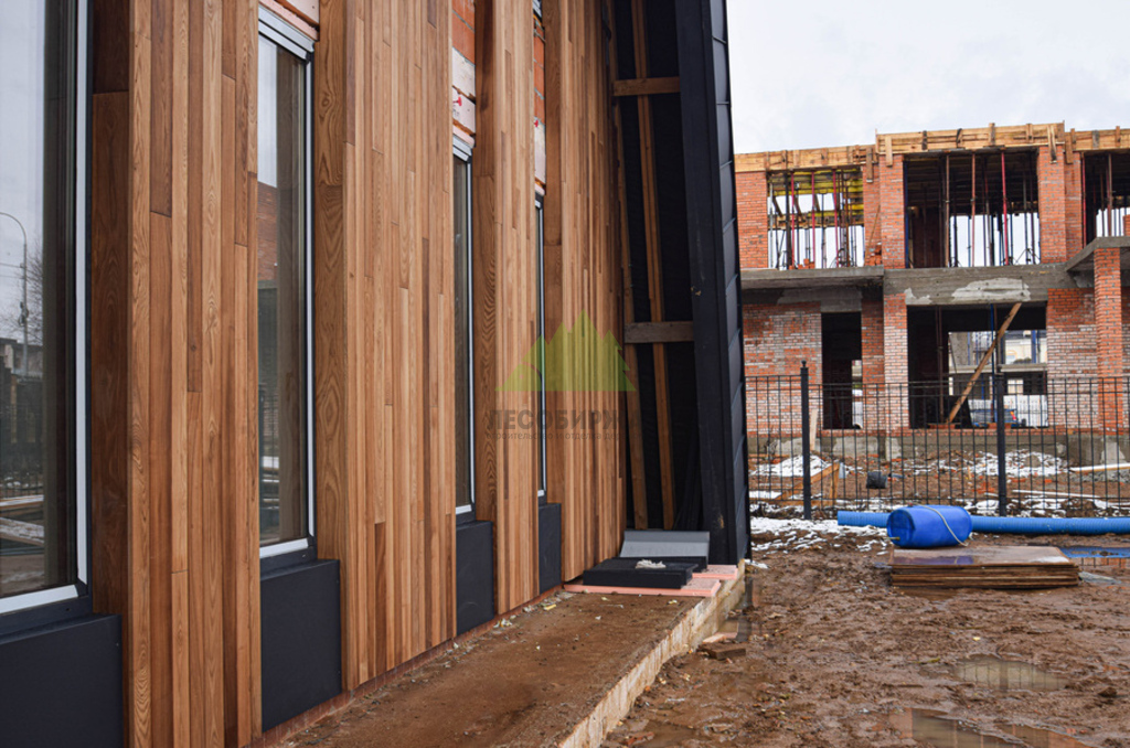 - Высокая стабильность геометрических размеров. Благодаря термообработке древесина становится значительно менее подверженной деформации – короблению, растрескиванию, усадке или разбуханию при изменениях влажности и температуры. Это обеспечивает идеальную геометрию фасада на протяжении многих лет.