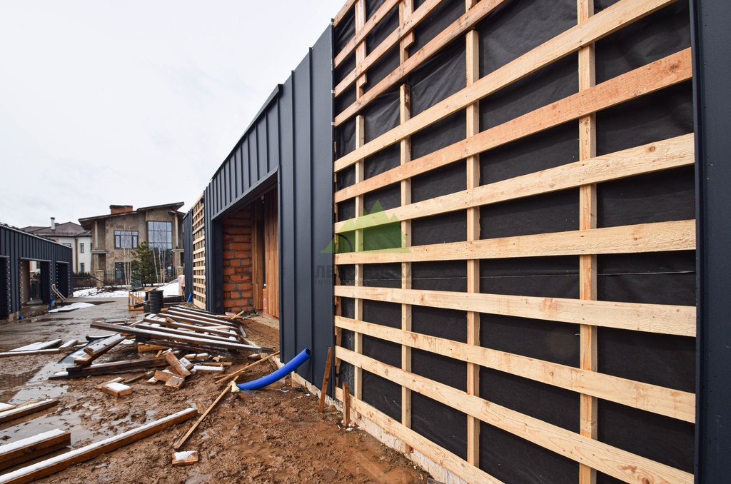 Монтаж планкена осуществлялся с особым вниманием к деталям. Каждый элемент устанавливался вертикально, с соблюдением технического зазора в 3 мм для обеспечения вентиляции. Для скрытого крепления мы использовали проверенный крепеж Конструктор 190 и саморезы CAMO ProTech 48 мм, гарантирующие надежность и эстетичный вид фасада без видимых элементов фиксации.