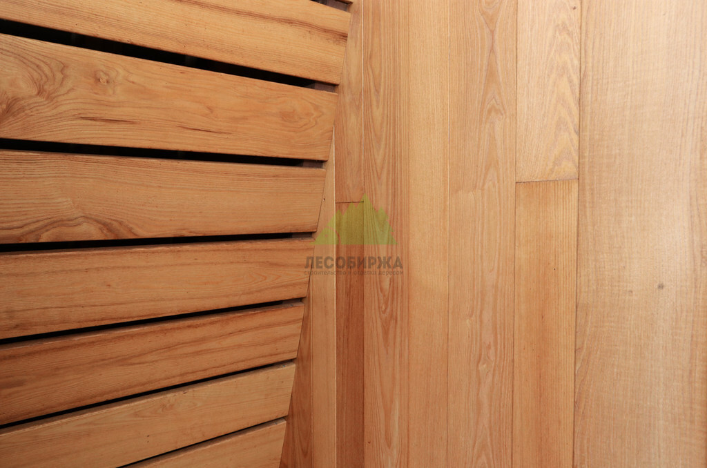 - Повышенная износостойкость. Термоясень обладает высокой устойчивостью к механическим повреждениям, истиранию и нагрузкам, что делает его идеальным материалом для внешней отделки.