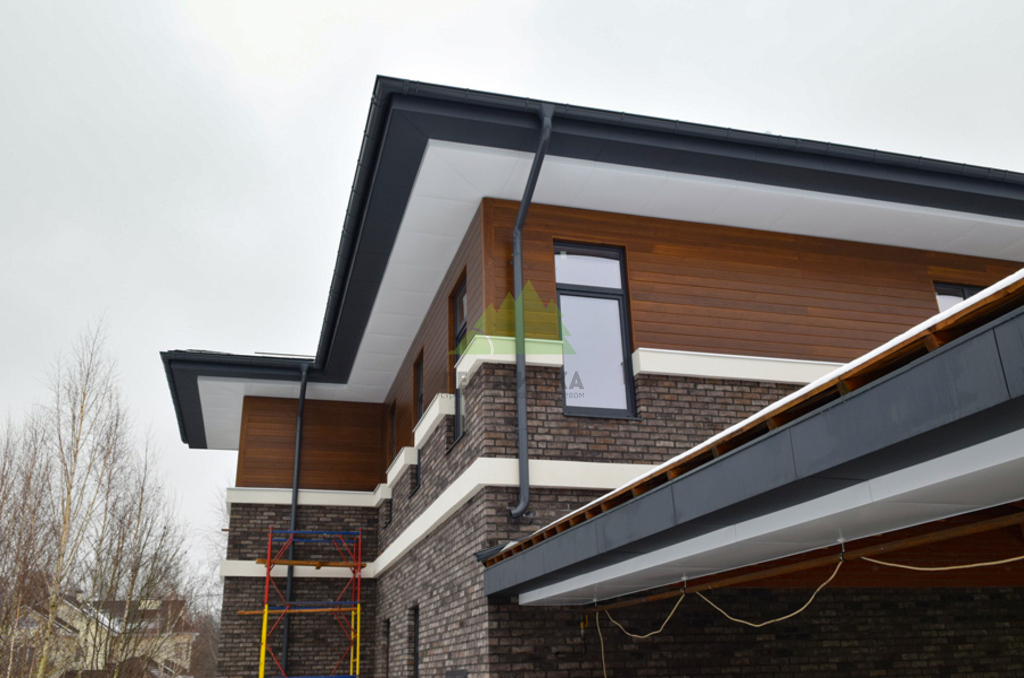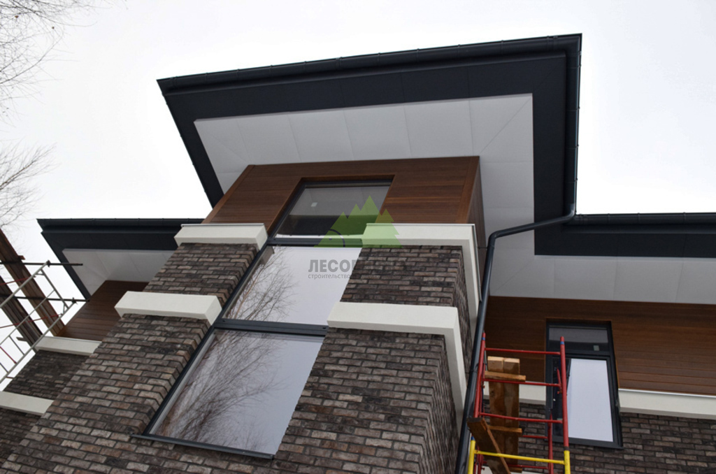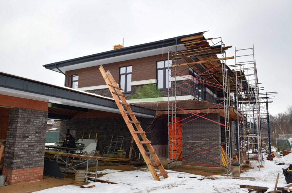 Заказчик имел четкое видение своего будущего дома: фасад должен был стать гармоничным сочетанием природной красоты лиственничного планкена и основательности натурального камня. Материал – скошенный планкен из лиственницы сорта Прима, уже готовый и покрашенный – был приобретен клиентом самостоятельно. Наша задача заключалась в безупречном монтаже этого материала на подготовленную обрешетку, профессиональном устройстве оконных и дверных проемов, установке системы отливов и, конечно, в реализации наших фирменных, врезных углов, которые придают фасаду завершенный и элегантный вид. Проект был интересен и своей спецификой: часть работ проводилась параллельно с деятельностью кровельщиков, что потребовало от нашей команды особой координации и гибкости. Мы всегда готовы к таким вызовам, ведь наша цель – достичь идеального результата, независимо от внешних обстоятельств.