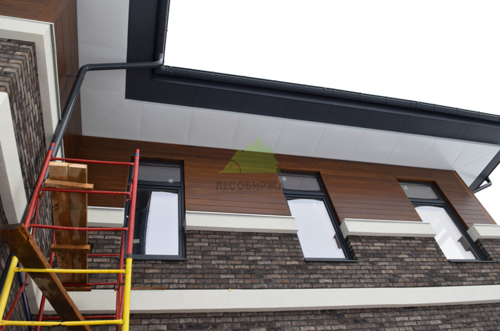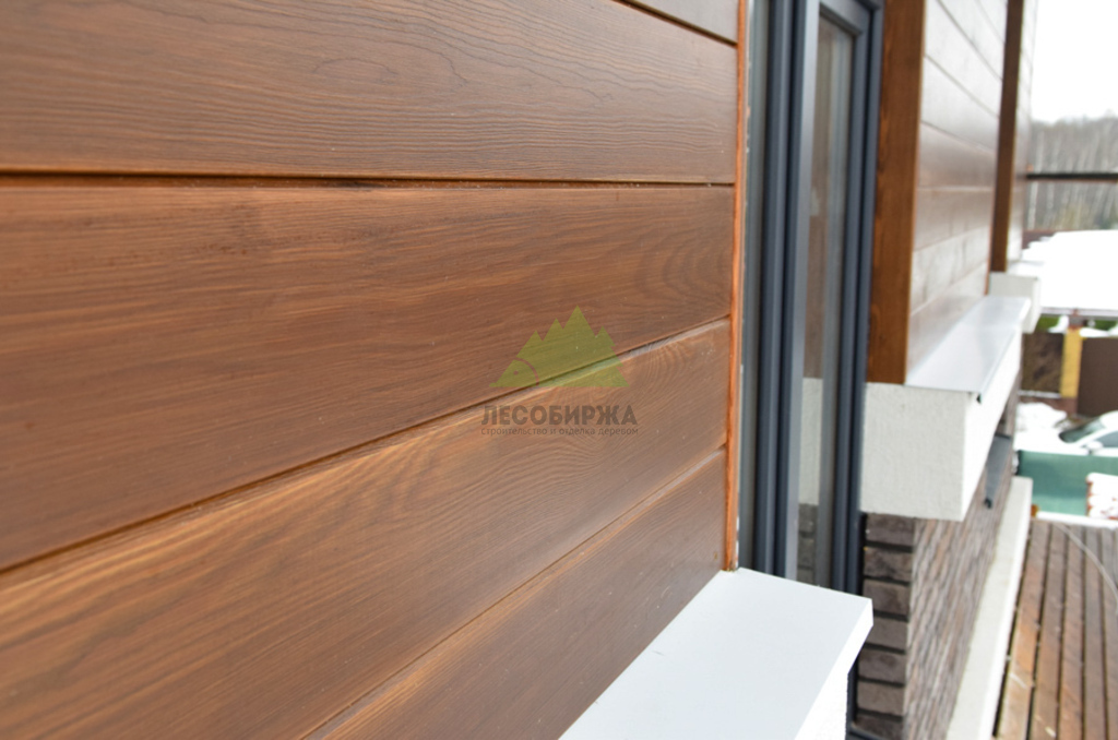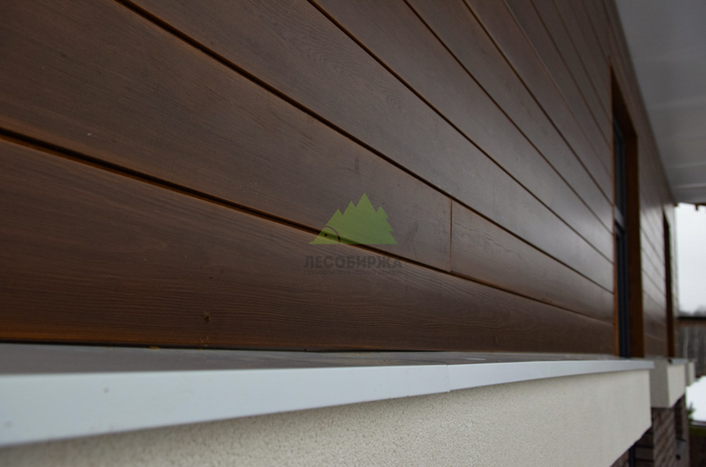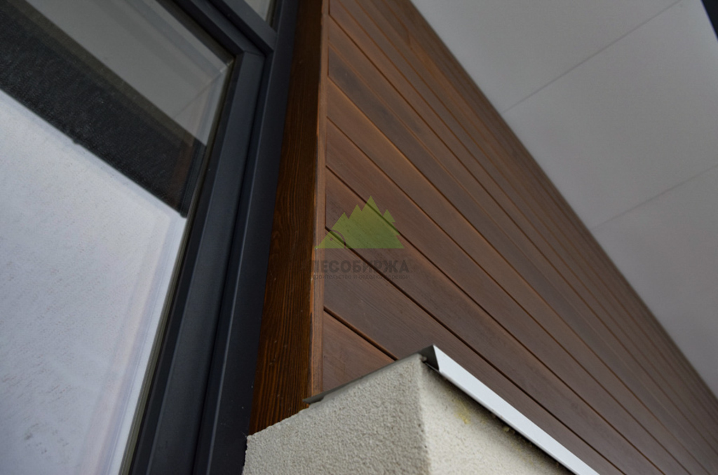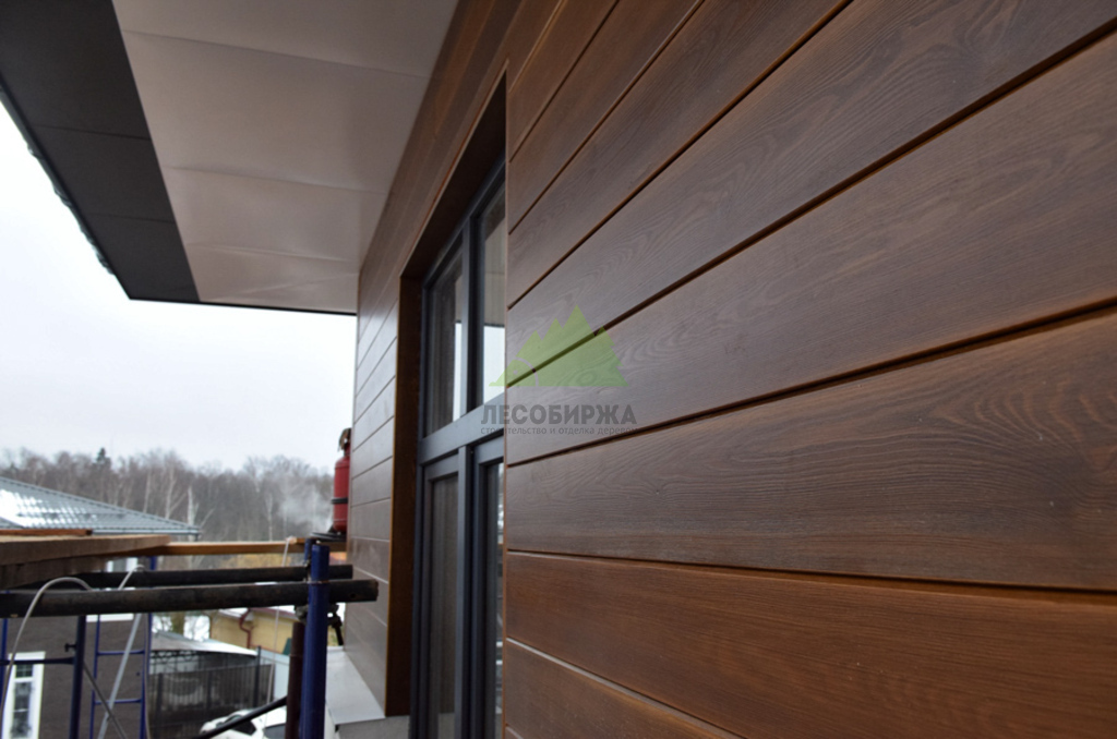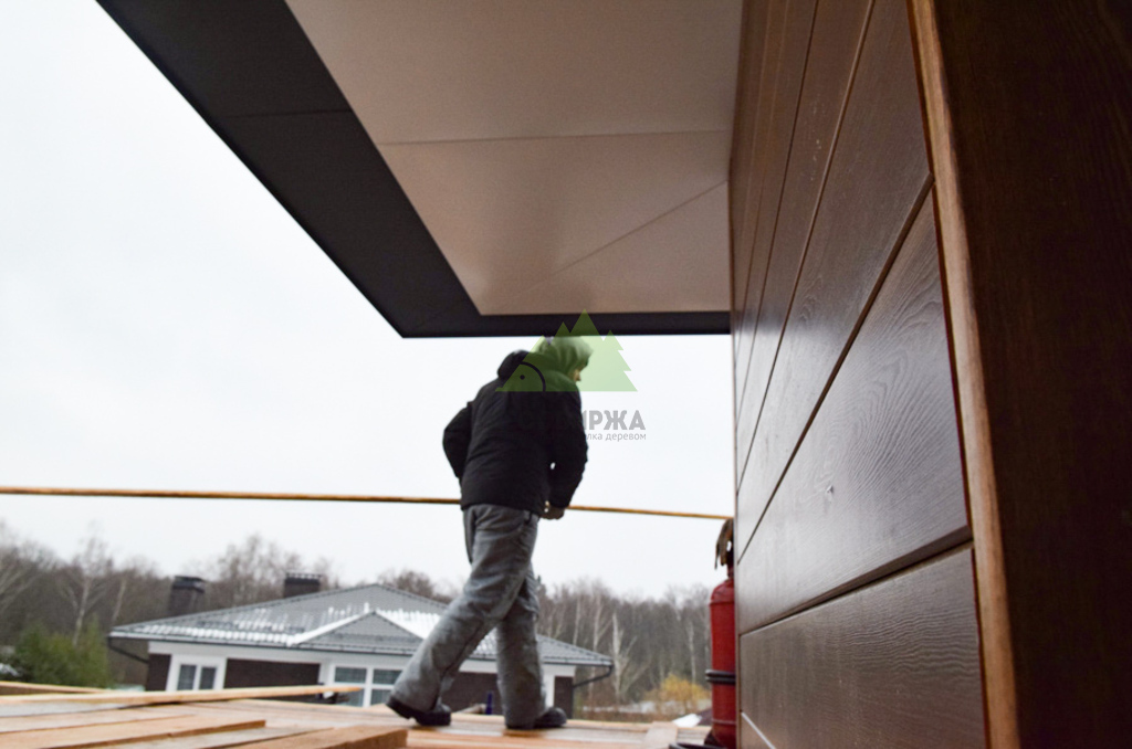 Процесс монтажа фасадного планкена требует высокой точности и профессионализма. Наши специалисты начали с установки вентилируемой обрешетки из сухих строганных брусков хвойных пород. Поскольку дом не требовал дополнительного утепления, подсистема монтировалась непосредственно на несущие стены, обеспечивая прочную и ровную основу для будущего фасада. Для крепления планкена использовался скрытый крепеж, предоставленный заказчиком. Хотя выбранный тип крепежа имел свои особенности, наши мастера с многолетним опытом работы виртуозно справились с задачей, обеспечив безупречный и равномерный зазор между досками. Именно такие моменты отличают профессионалов Лесобиржи-Спб: мы не просто выполняем работу, мы находим оптимальные решения даже в нестандартных ситуациях, гарантируя высочайшее качество и эстетику.