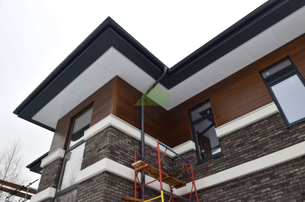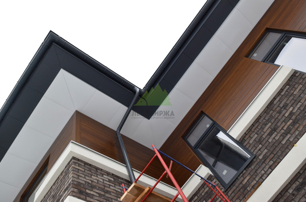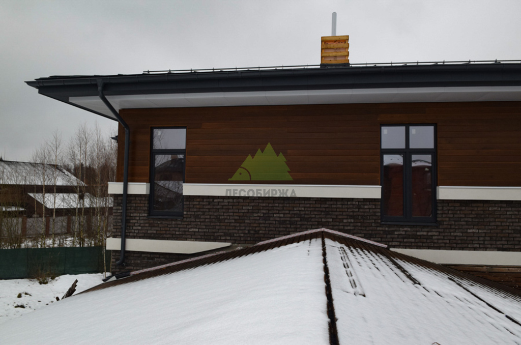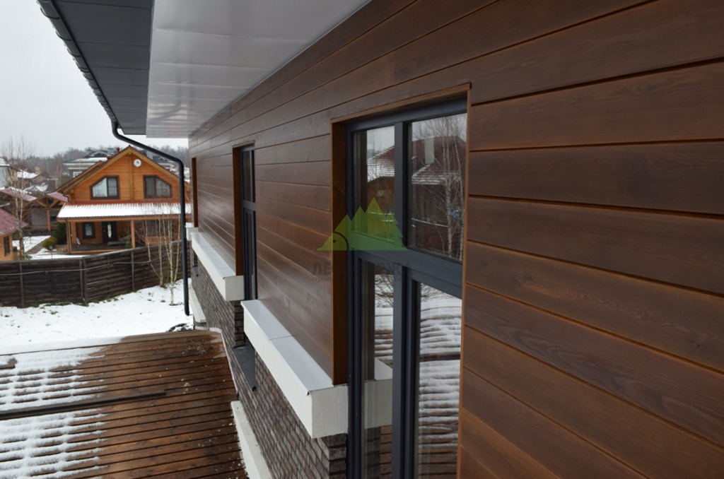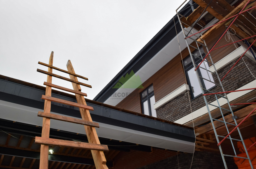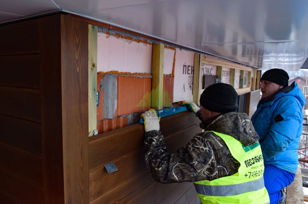 Процесс монтажа фасадного планкена требует высокой точности и профессионализма. Наши специалисты начали с установки вентилируемой обрешетки из сухих строганных брусков хвойных пород. Поскольку дом не требовал дополнительного утепления, подсистема монтировалась непосредственно на несущие стены, обеспечивая прочную и ровную основу для будущего фасада. Для крепления планкена использовался скрытый крепеж, предоставленный заказчиком. Хотя выбранный тип крепежа имел свои особенности, наши мастера с многолетним опытом работы виртуозно справились с задачей, обеспечив безупречный и равномерный зазор между досками. Именно такие моменты отличают профессионалов Лесобиржи-Спб: мы не просто выполняем работу, мы находим оптимальные решения даже в нестандартных ситуациях, гарантируя высочайшее качество и эстетику.