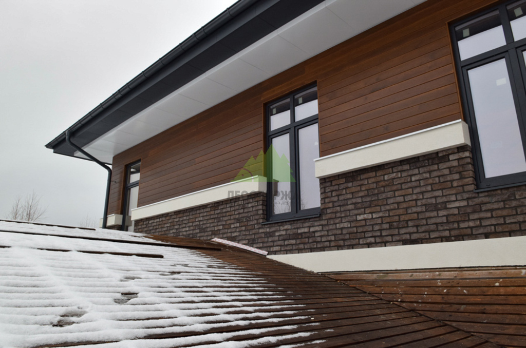 Особое внимание уделялось деталям, которые формируют общий вид фасада. Планкен был смонтирован горизонтально, что позволило визуально выделить архитектурные элементы коттеджа и придать ему динамичность. Важной частью работы стало обустройство оконных и дверных проемов. Мы "принарядили" их декоративными планками из лиственницы, которые не только функционально защищают стыки, но и служат элегантным обрамлением. Все стыки были выполнены с исключительной аккуратностью, а угловые части фасада получили наше фирменное оформление – врезные или накладные декоративные Г-образные элементы, которые скрывают крепеж и создают чистые, строгие линии. Использование оцинкованных крепежных элементов, даже если они были предоставлены заказчиком, обеспечивает дополнительную защиту от коррозии, продлевая срок службы всей конструкции.