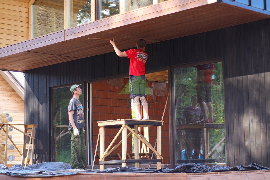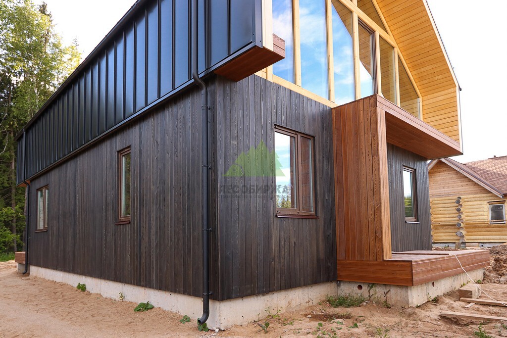 Наши специалисты, работающие в бригаде из четырех человек, выполнили весь комплекс работ по обшивке фасада за 21 день. Мы гордимся тем, что благодаря нашему опыту и вниманию к деталям, каждый этап проекта был реализован с максимальной точностью и в соответствии с высочайшими стандартами качества Лесобиржи-Спб. Клиент остался в полном восторге от результата. Благородный темный оттенок планкена из лиственницы гармонично сочетается с другими элементами конструкции дома, создавая завершенный и стильный образ. Как и ожидал заказчик, фасад не привлекает ненужного внимания, но при этом выглядит солидно, презентабельно и демонстрирует безупречный вкус владельца. Это не просто обшивка, это настоящее произведение строительного искусства, выполненное с любовью и профессионализмом.
