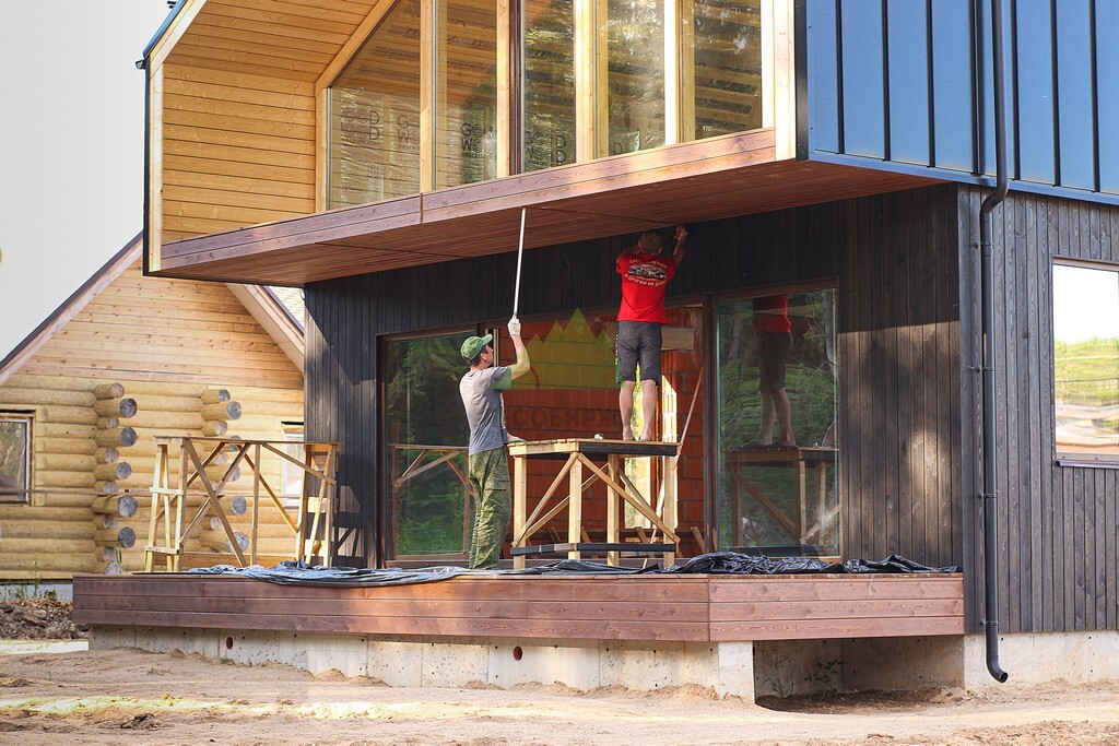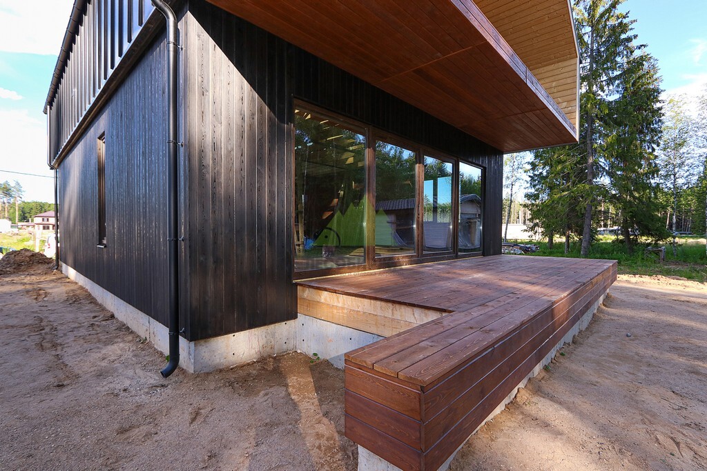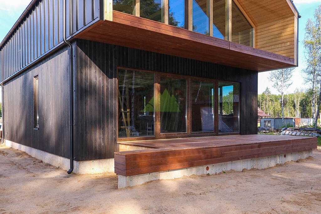 Клиент обратился к нам с четким видением: создать экстерьер, который будет одновременно элегантным, натуральным и неброским, при этом обладающим высокой стойкостью к переменчивому климату нашего региона. Основной задачей стала вертикальная обшивка фасада планкеном из сибирской лиственницы – материала, который идеально вписывается в концепцию Barnhouse. Большие панорамные окна и компактная терраса без излишних декоративных элементов уже задавали тон, и нашей задачей было не просто обшить стены, но и гармонично интегрировать новое покрытие в существующий дизайн, подчеркнув его характер. Мы в "Лесобирже-Спб" всегда внимательно прислушиваемся к пожеланиям клиентов, превращая их мечты в реальность.