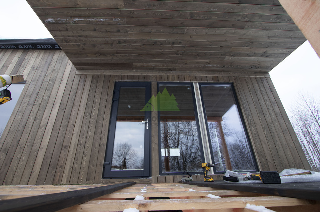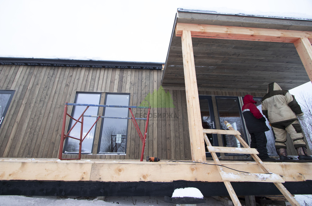 Монтаж планкена на фасад каркасного дома под ключ: сосна + скрытый крепеж CAMO | ООО "Лесобиржа"- СПб. Москва