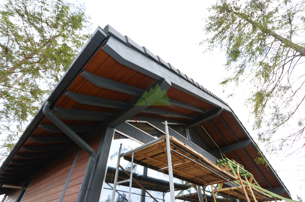 На объекте начался монтаж уже окрашенного материала. Работали с постоянной проверкой плоскостей, зазоров и геометрии, аккуратно собирали раскладку и узлы. Основная цель на этом этапе: не повредить готовый финиш и не “перекосить” картинку.