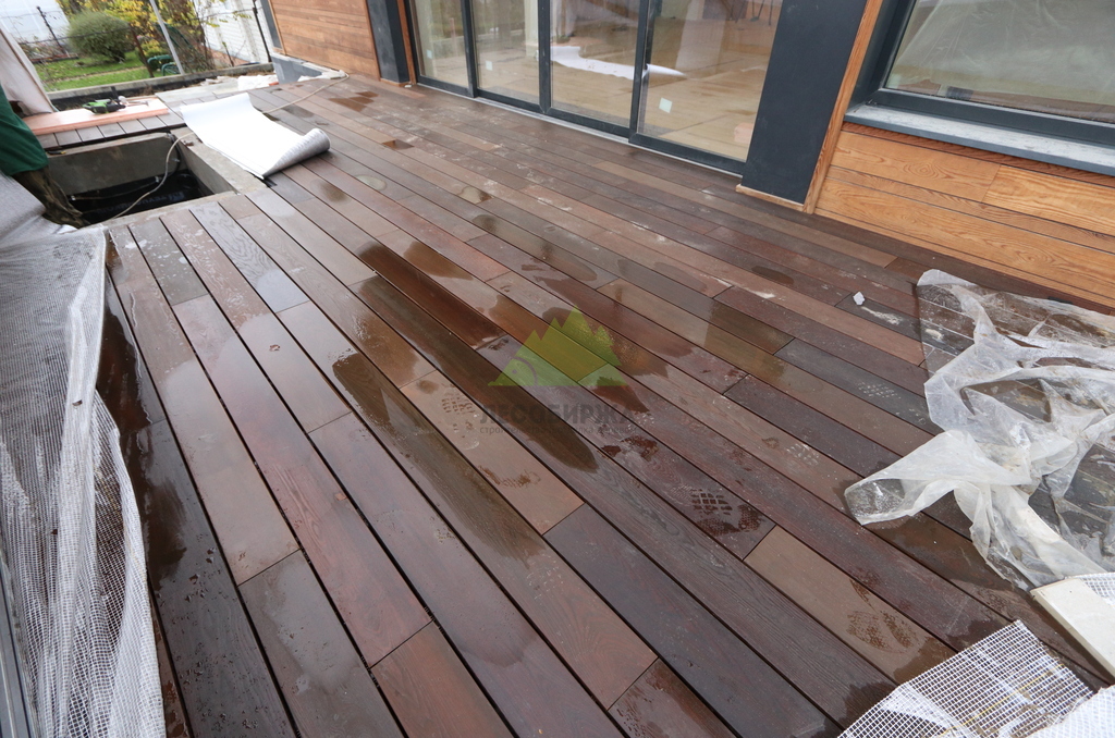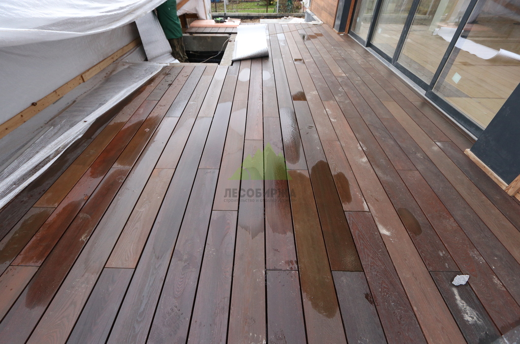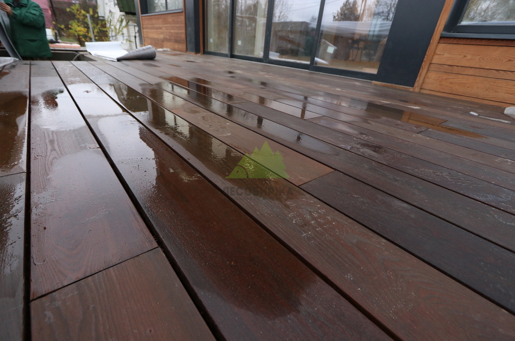 Итак, причины, почему был выбран именно этот материал, очевидны. Помимо качества планкена нужно было уделить внимание средству для его окрашивания. Оно решает несколько задач: