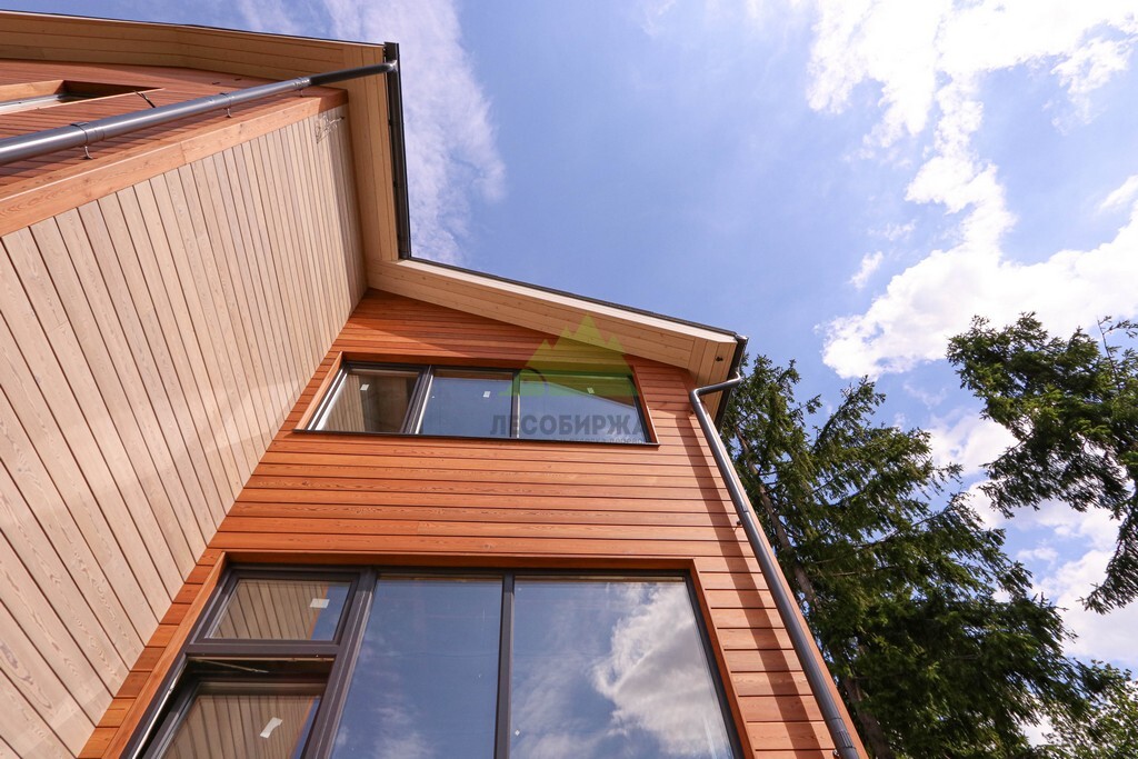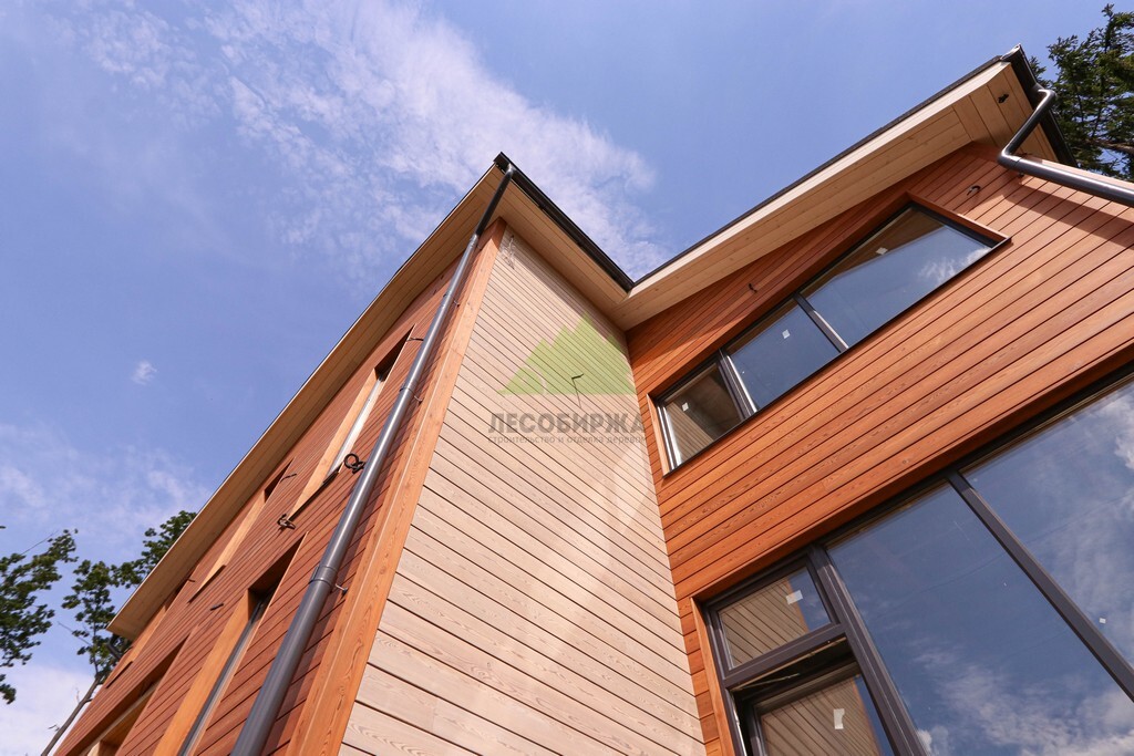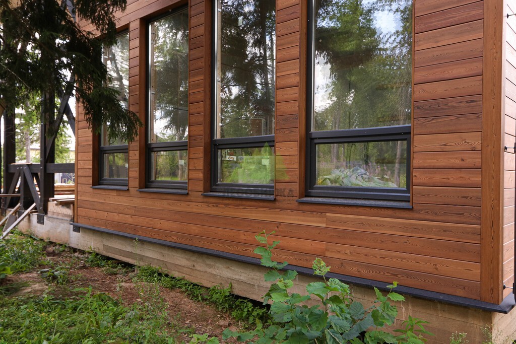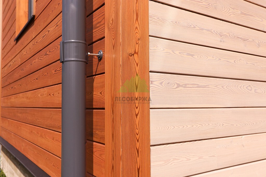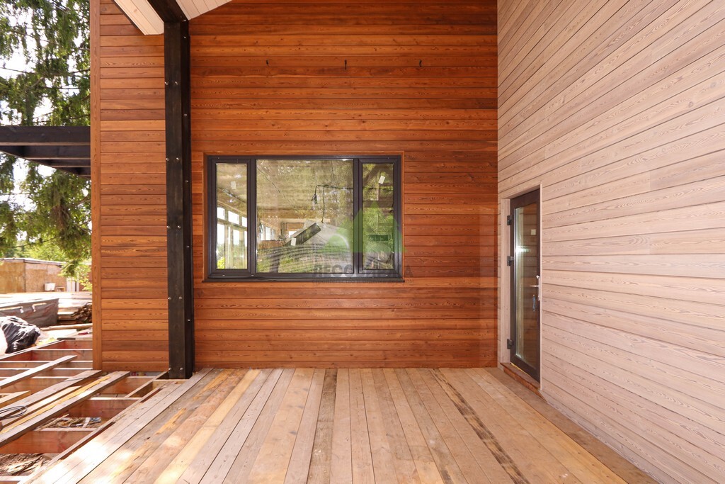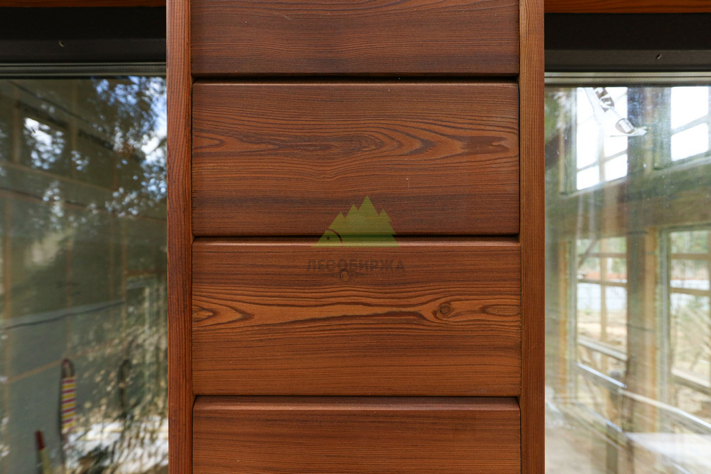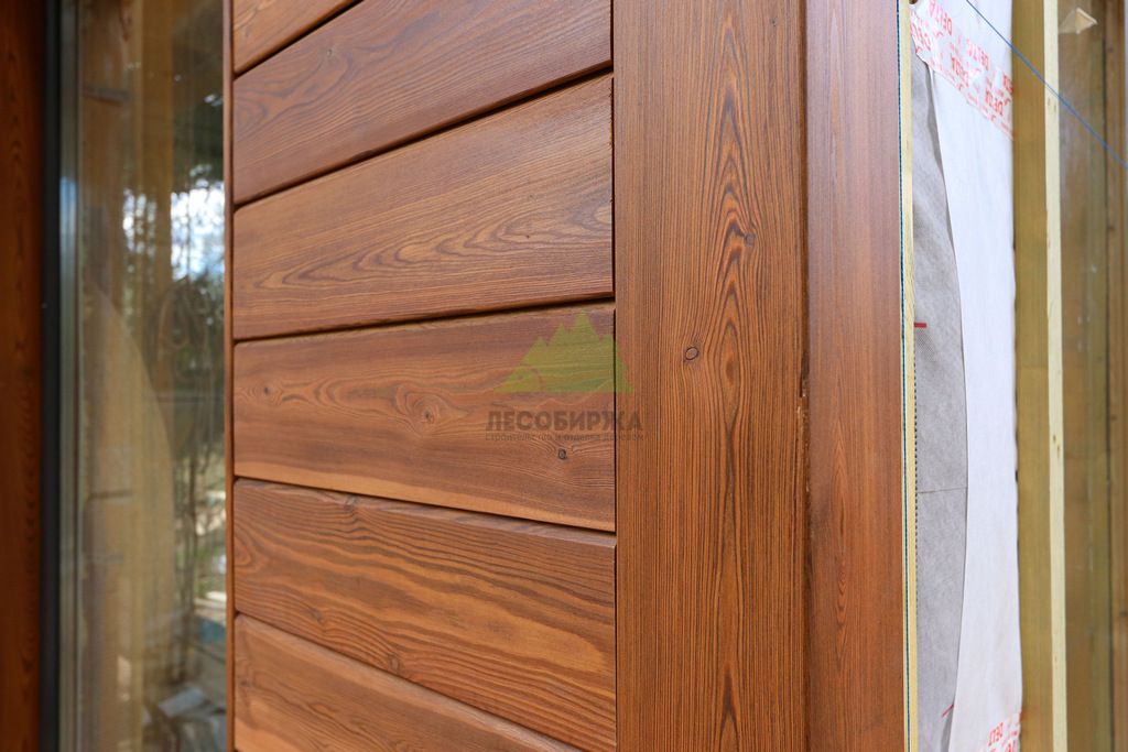 - Привлекательный оттенок: Под воздействием высоких температур древесина лиственницы приобретает глубокий, насыщенный оттенок, варьирующийся от золотисто-медового до темно-коричневого. Это придает фасаду благородный и изысканный вид, который к тому же сохраняется гораздо дольше, чем у необработанной древесины.