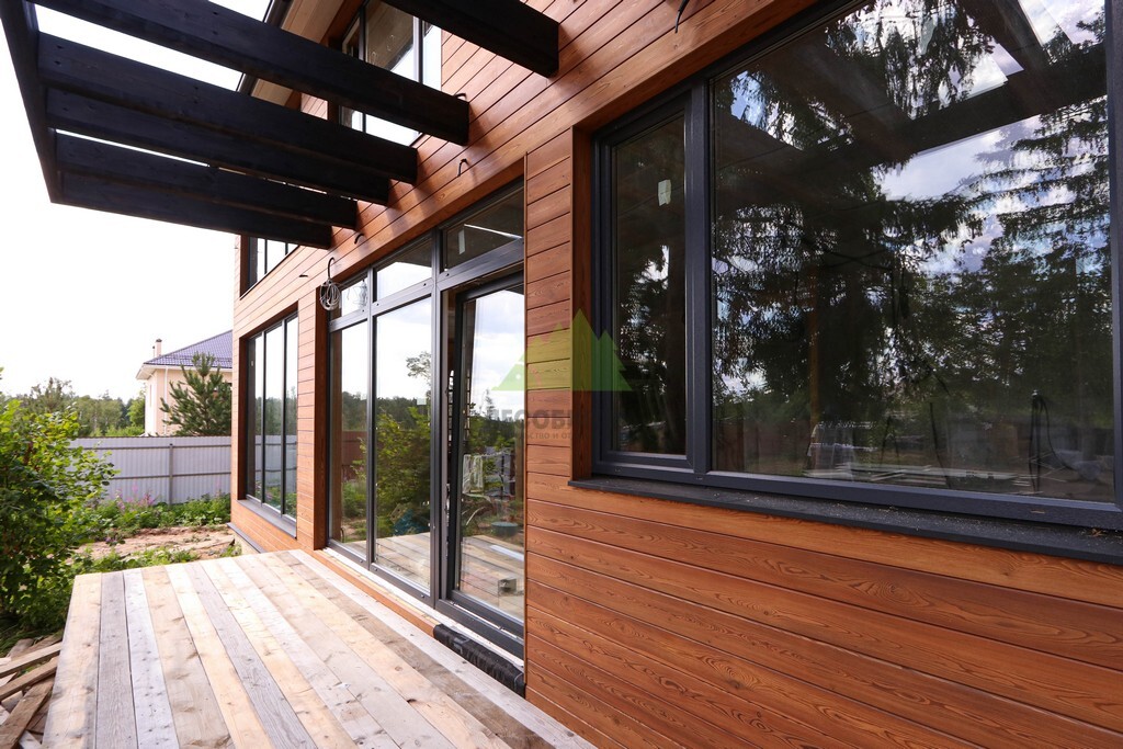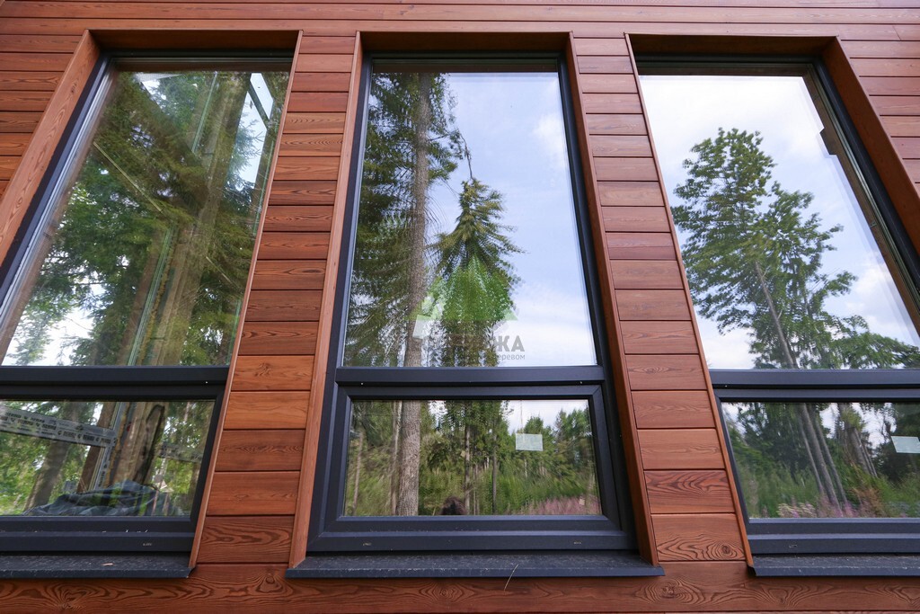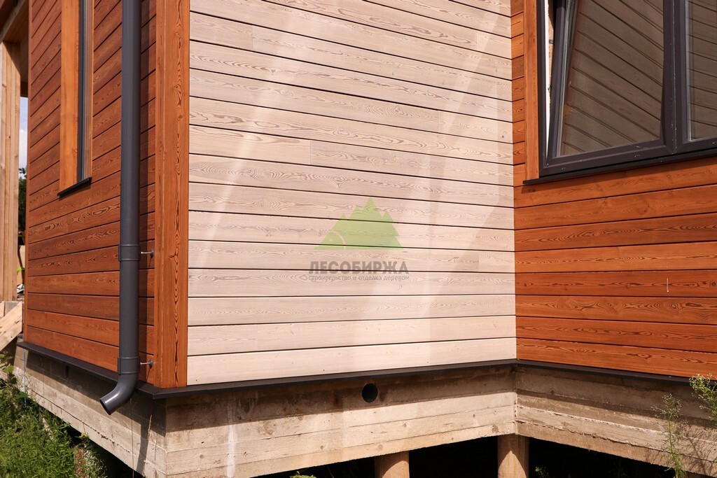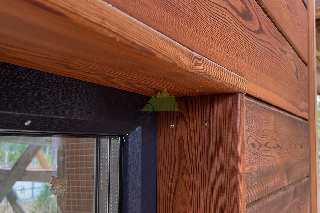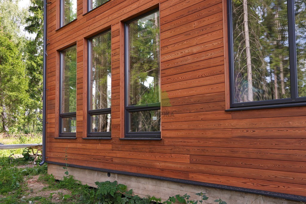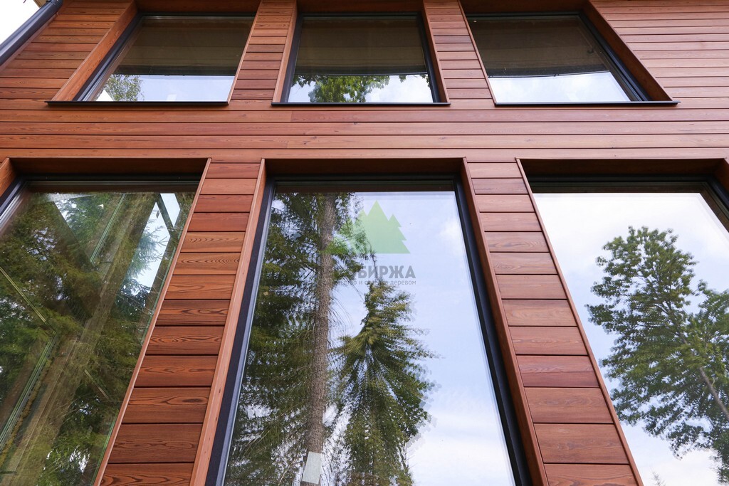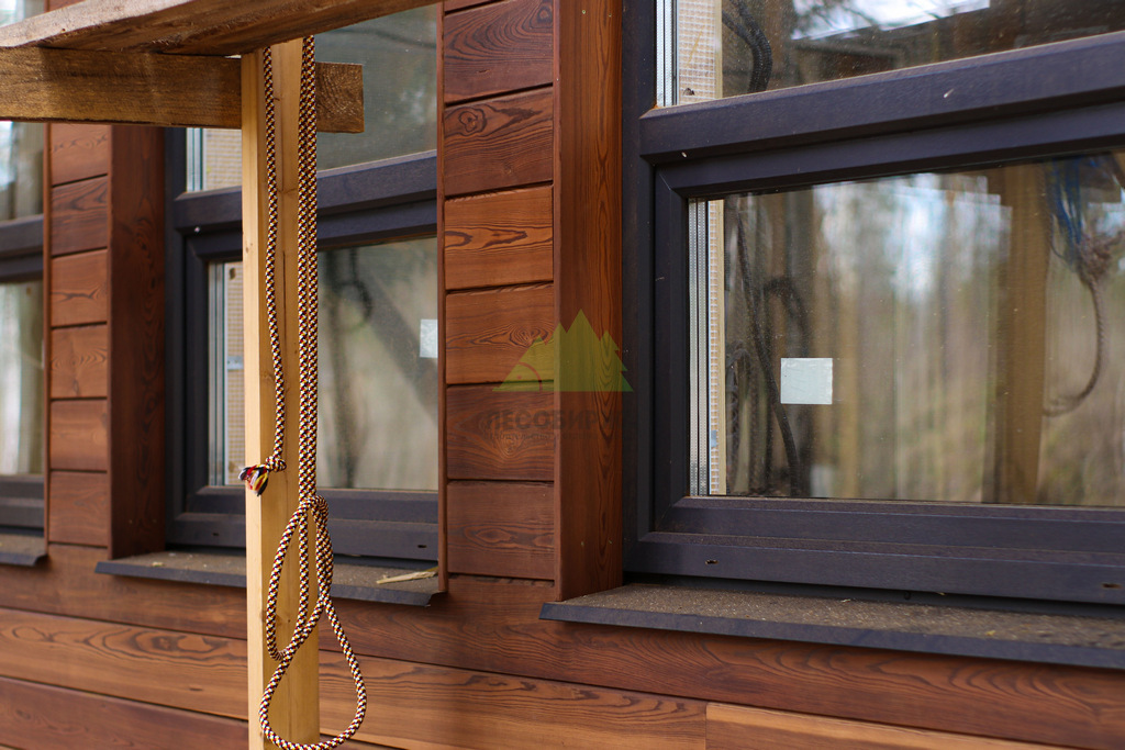 - Привлекательный оттенок: Под воздействием высоких температур древесина лиственницы приобретает глубокий, насыщенный оттенок, варьирующийся от золотисто-медового до темно-коричневого. Это придает фасаду благородный и изысканный вид, который к тому же сохраняется гораздо дольше, чем у необработанной древесины.
