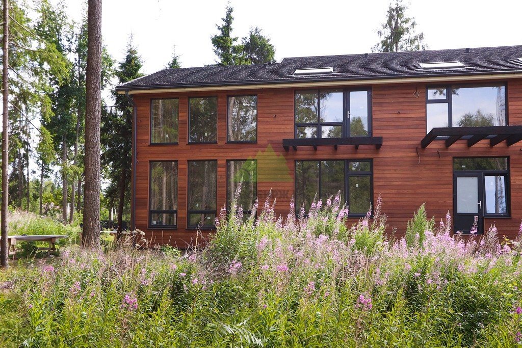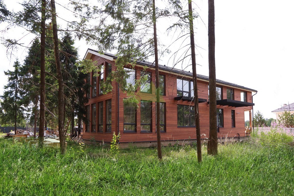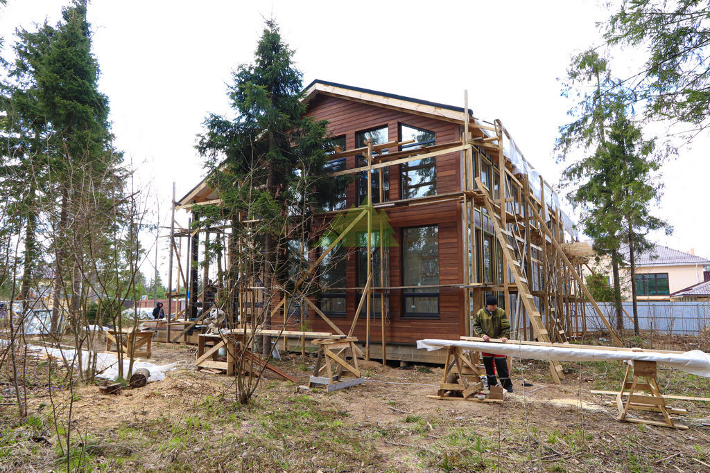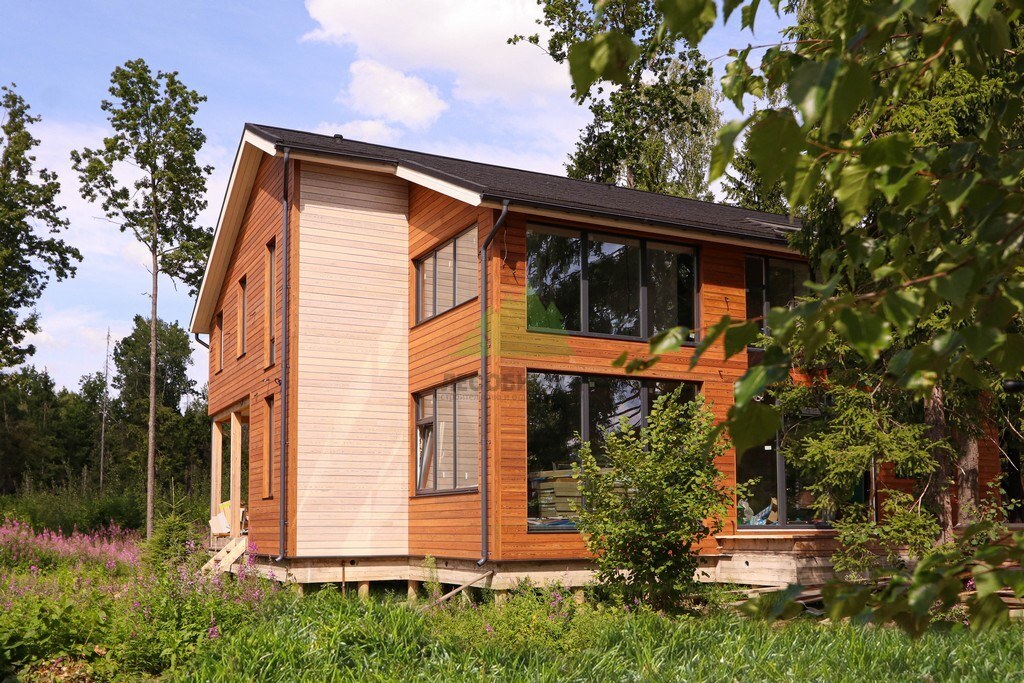В живописных "Петергоффских аллеях", где каждый дом стремится гармонично вписаться в окружающий ландшафт, к нам, в компанию Лесобиржа-Спб, обратились владельцы каркасного дома с амбициозной задачей. Они мечтали о полном преображении фасада, который бы не только радовал глаз своей эстетикой, но и обеспечивал безупречную долговечность и устойчивость к непростому климату Санкт-Петербурга и Ленинградской области. Основным требованием было использование планкена из термолиственницы для основной обшивки, а также аккуратный и надежный монтаж свесов кровли с применением прямого планкена из хвойных пород.