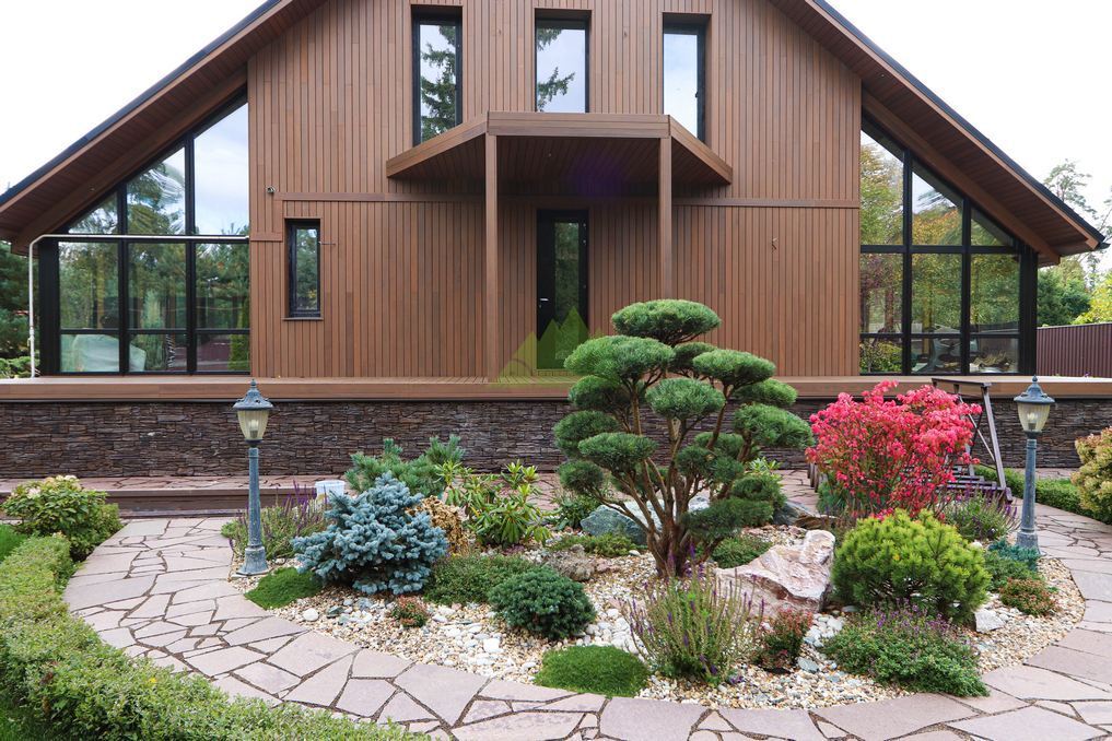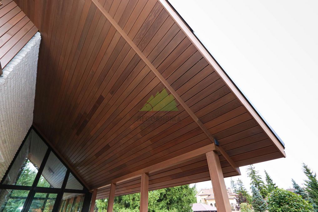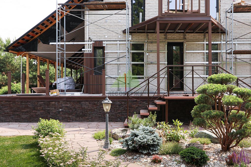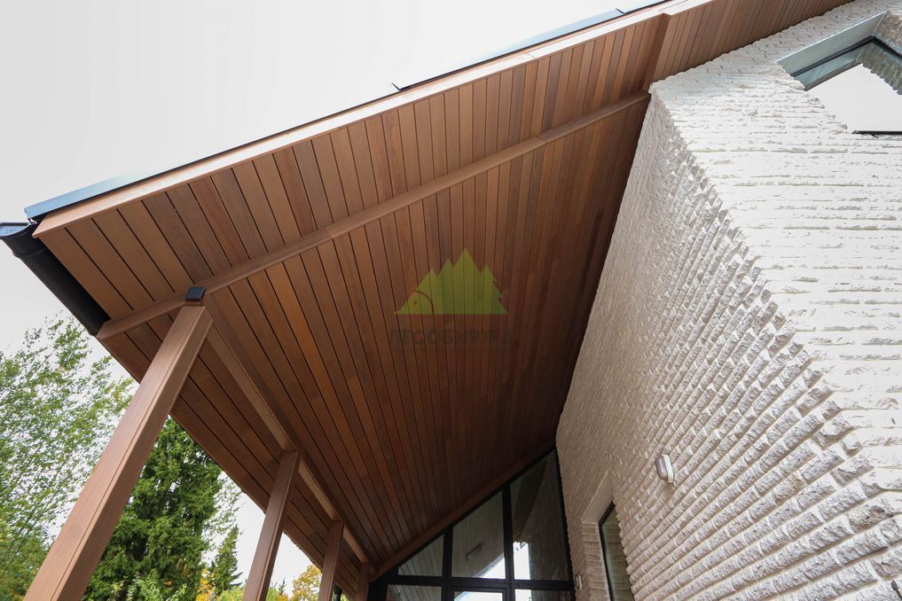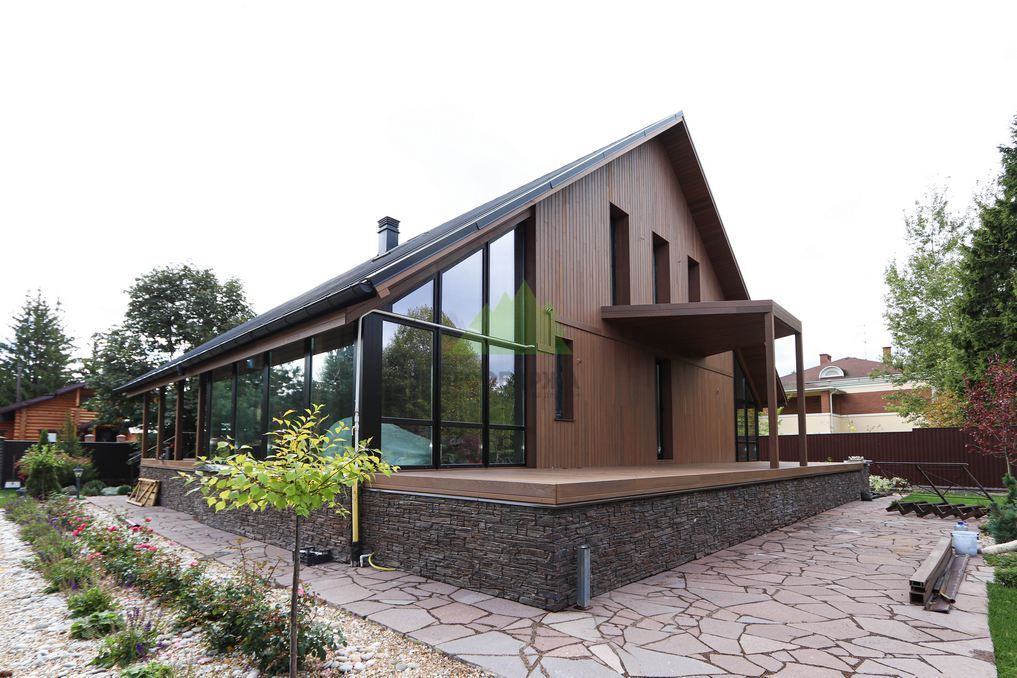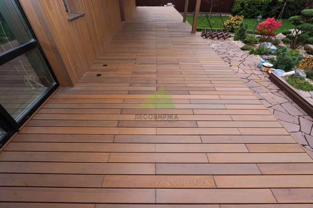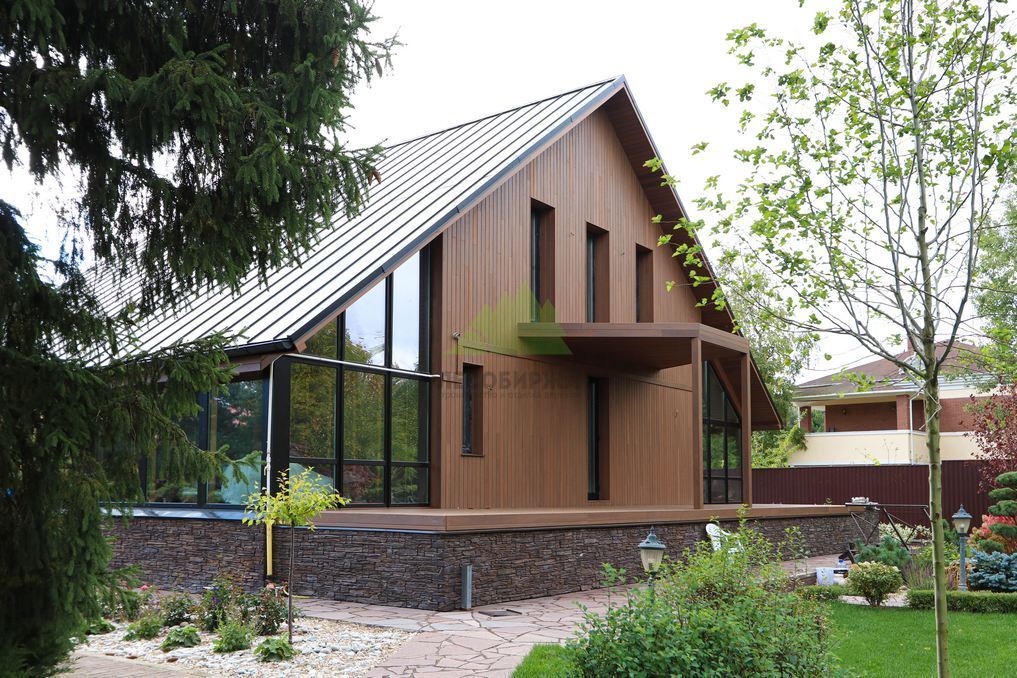 Помимо фасада, термопланкен был успешно применен для создания просторной террасы. Это решение позволило добиться единого стилистического ансамбля и визуально объединить экстерьер дома с окружающим пространством. На настиле террасы был выдержан одинаковый технологический зазор между досками, что обеспечивает не только эффективный отток дождевой воды, но и отличную вентиляцию. Это критически важно для предотвращения скопления влаги, гниения и увеличения срока службы террасного покрытия. Такой подход демонстрирует наше стремление к комплексному решению задач и вниманию к функциональности каждого элемента конструкции. Клиент остался в восторге от того, как гармонично и продуманно удалось оформить не только стены, но и зону отдыха, создав идеальное место для семейных вечеров и встреч с друзьями.