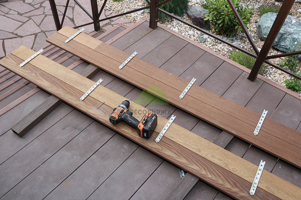 Монтаж планкена осуществлялся с применением передовых технологий и профессионального инструмента. Наши мастера, обладающие богатым опытом работы с термодревесиной, использовали систему скрытого крепежа САМО Marksman Pro. Это не только гарантирует эстетическую безупречность фасада, без видимых головок саморезов, но и значительно увеличивает срок службы всей конструкции. Для крепления использовались специальные саморезы САМО Pro Tech 48 мм, конструкция которых разработана для работы с плотными породами древесины и обеспечивает максимальную надежность: