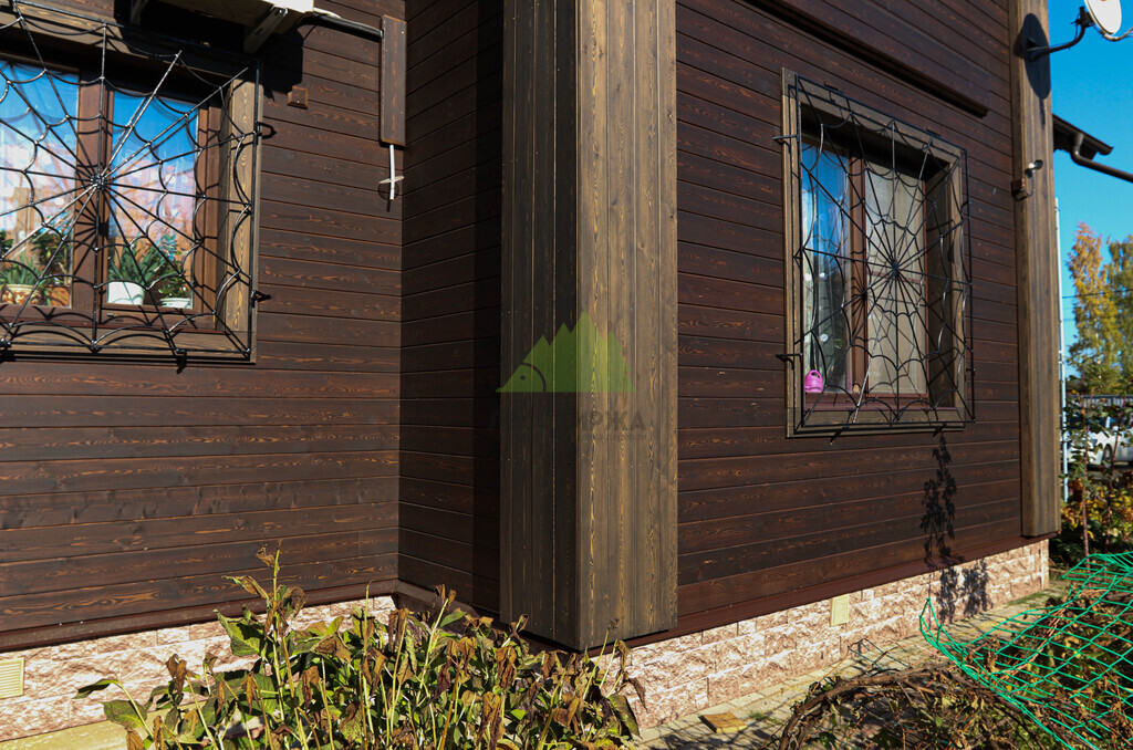 - Простота в уходе и обслуживании. Фасад, выполненный из высококачественной лиственницы и покрытый современным гидромаслом, не требует сложного ухода. Периодическое обновление защитного слоя (раз в несколько лет) позволит поддерживать его в идеальном состоянии, сохраняя насыщенность цвета и защитные свойства.