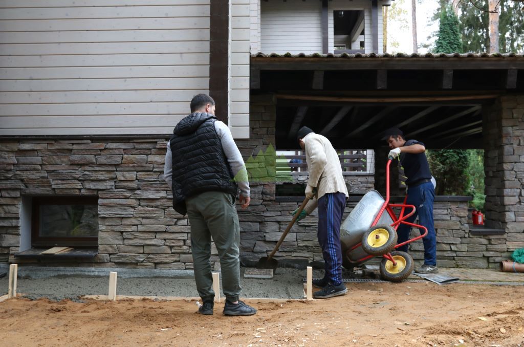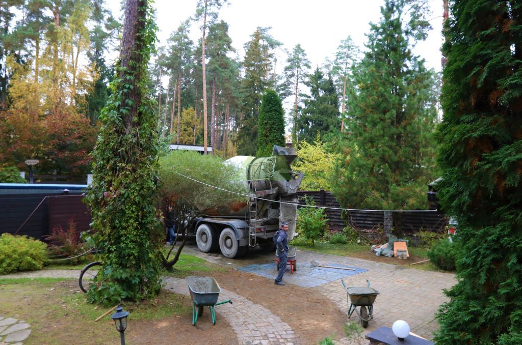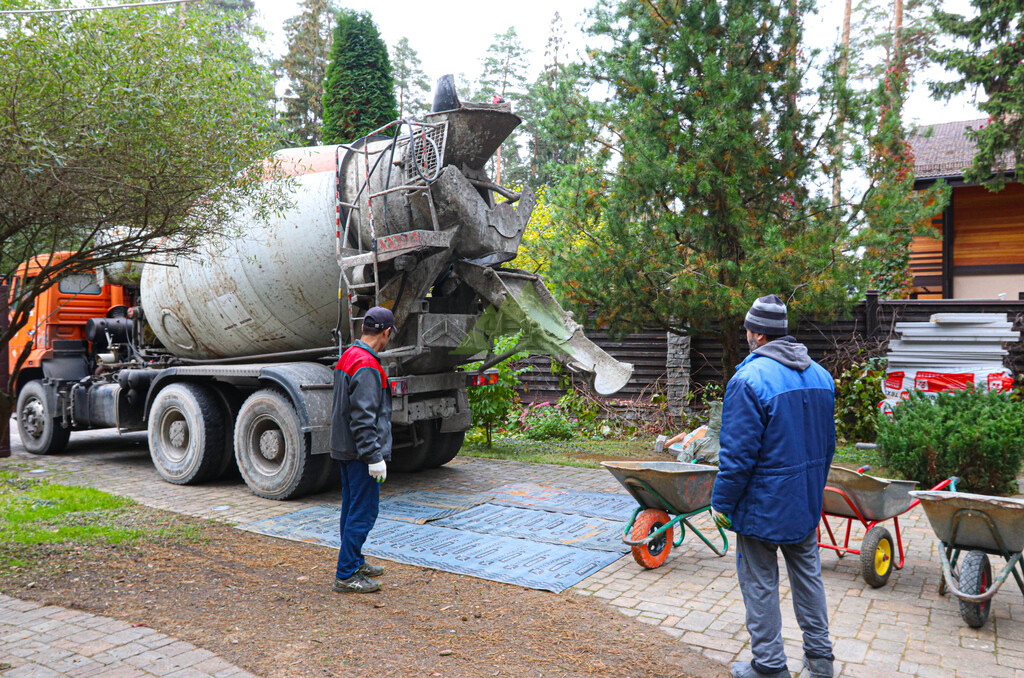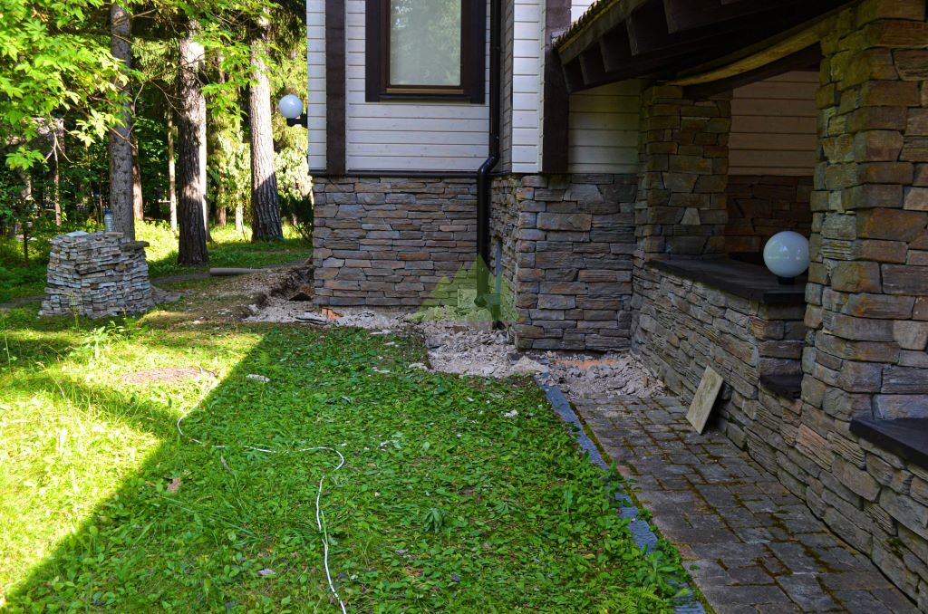6. Финальная укладка плитки на отмостку. Завершающим аккордом стала укладка ранее бережно демонтированной плитки на новую отмостку. Этот этап требовал не только точности, но и художественного вкуса, чтобы восстановить первоначальный вид придомовой территории. Плитка укладывалась на специальный клеевой состав, устойчивый к перепадам температур и влажности, с соблюдением всех зазоров и уровня. В результате отмостка не только эффективно выполняет свою защитную функцию, но и гармонично вписывается в общий ландшафтный дизайн, придавая дому ухоженный и завершенный вид.