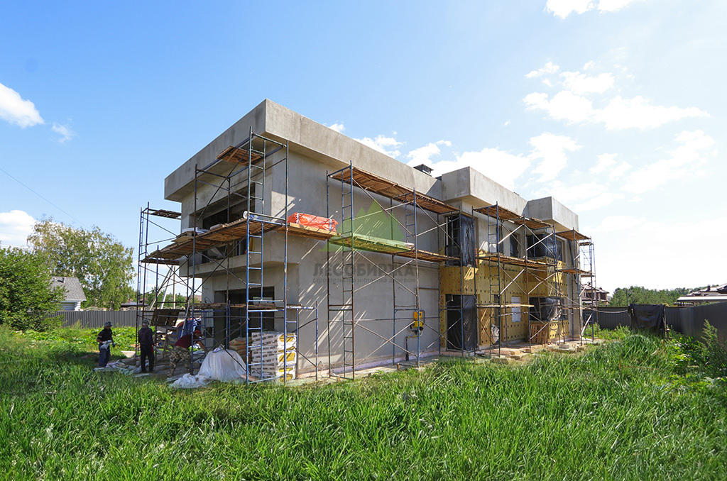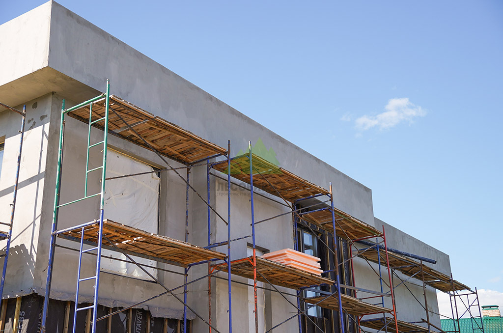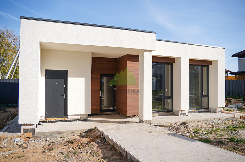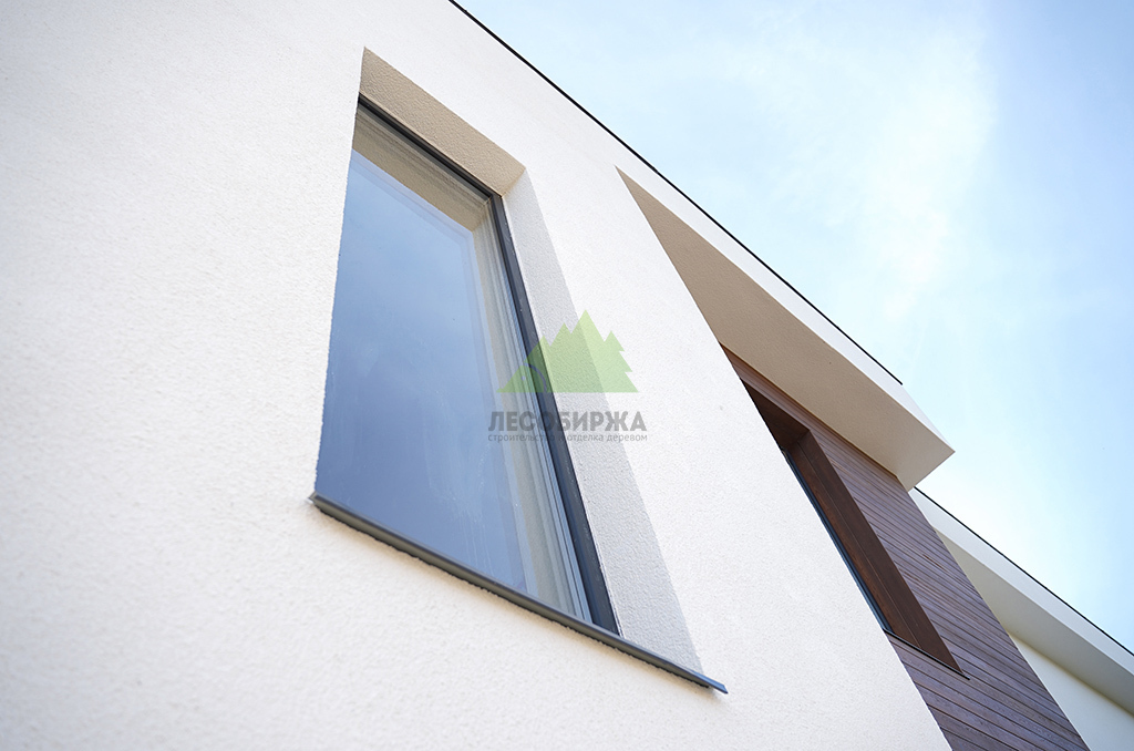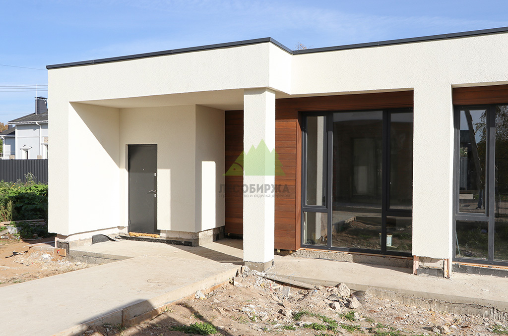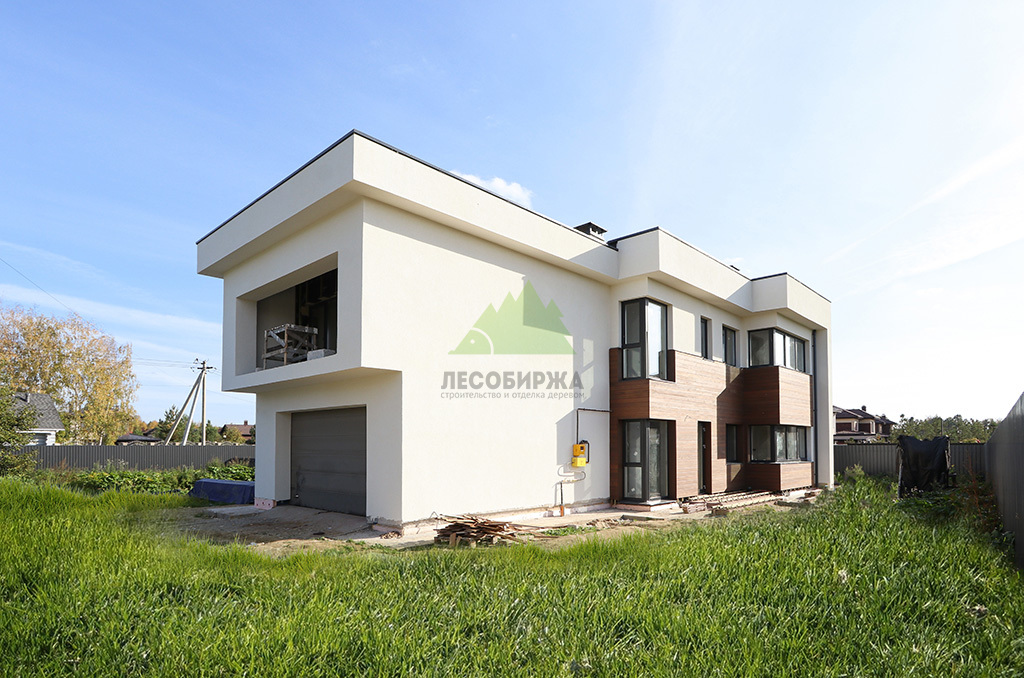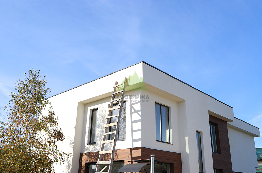 В живописном уголке коттеджного поселка Лес и Пляж в Ленинградской области, перед нашей компанией "Лесобиржа-Спб" была поставлена увлекательная задача по преображению современного дома из газобетона. Владелец усадьбы стремился к созданию уникального и функционального экстерьера, выполненного в современном стиле "хай-тек", который бы гармонично сочетался с окружающей природой и при этом демонстрировал передовые технологии в строительстве. Основной акцент делался на утепленный комбинированный фасад, где штукатурка и натуральное дерево должны были создать выразительный и долговечный облик.