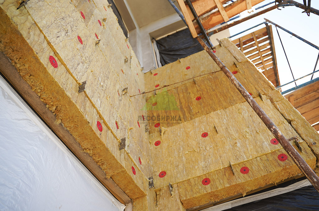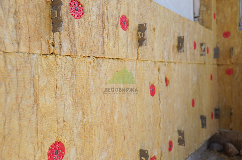 Монтаж плит утеплителя производился по технологии "мокрый фасад". На стены, после высыхания грунтовки, зубчатым шпателем был нанесен специальный штукатурный раствор Ceresit 85. Плиты минеральной ваты аккуратно приклеивались к стенам, а затем каждая плита дополнительно закреплялась механически – пятью дюбелями с широкими пластиковыми шляпками. Эта схема крепления, включающая четыре дюбеля по углам и один по центру каждой плиты, обеспечивает максимальную надежность и устойчивость всей конструкции к ветровым нагрузкам и перепадам температур, что особенно актуально в нашем регионе.