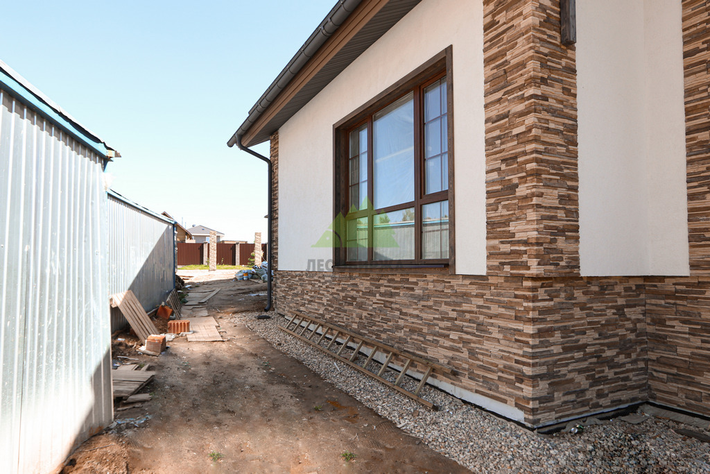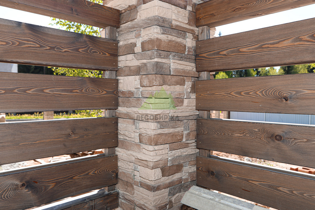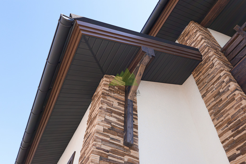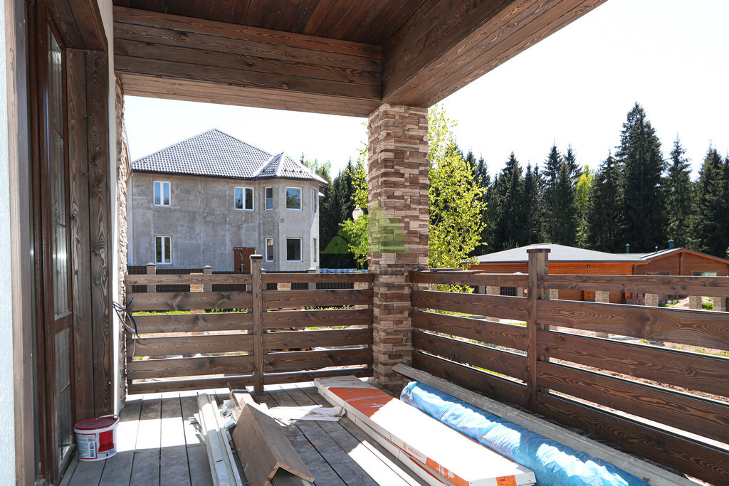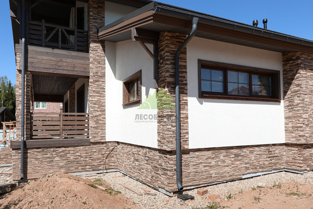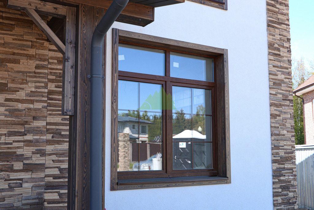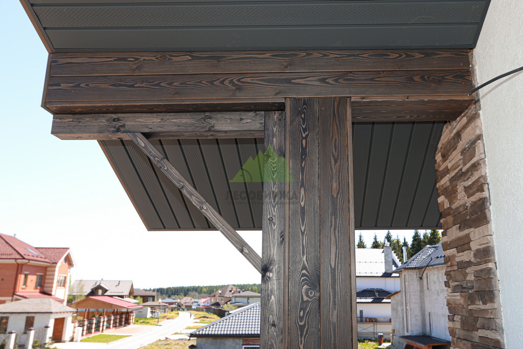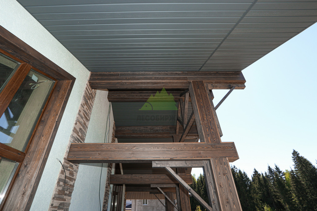 Перед нами стояла задача не просто выполнить отделочные работы, а создать целостный и долговечный архитектурный ансамбль. Клиент ясно обозначил свои пожелания: на первом этаже необходимо было обустроить пол из высококачественной лиственницы, смонтировать элегантные декоративные ограждения, обшить потолок, ригели, откосы и наличники планкеном. Балкон второго этажа требовал обшивки вертикальными балками, а также оформления декоративными элементами, откосами и наличниками в едином стиле. Особое внимание уделялось сочетанию натуральных материалов – дерева и уже имеющейся каменной отделки, чтобы достичь истинной атмосферы Шале.