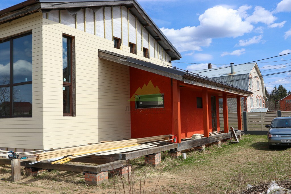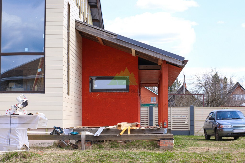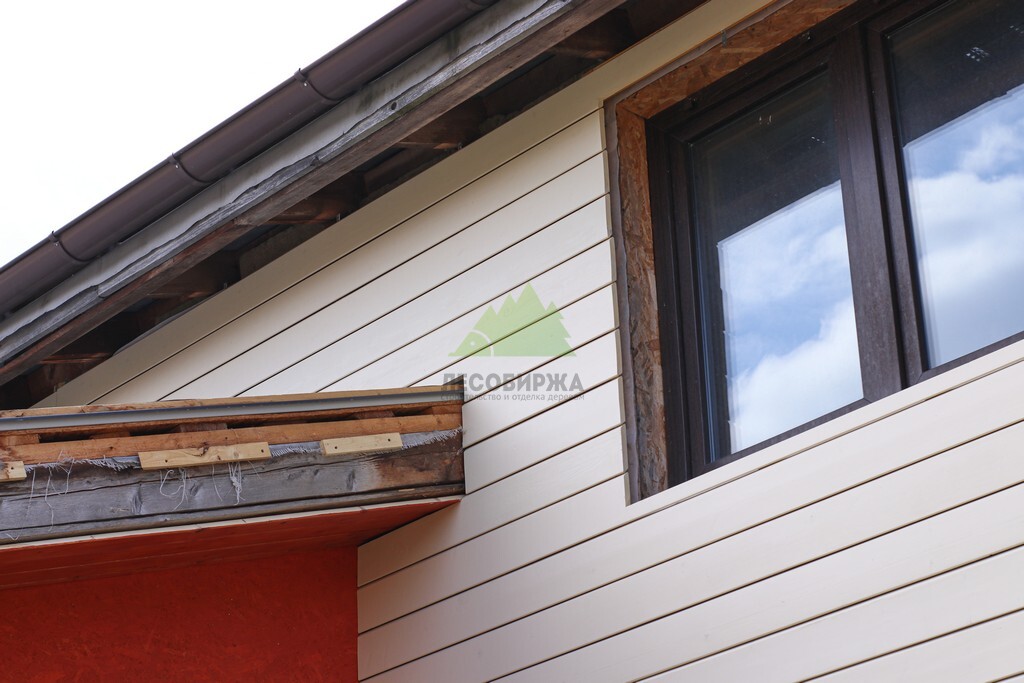 Помимо основной фасадной отделки, особое внимание было уделено деталям, которые формируют завершённый и благородный образ дома. Наши столяры-краснодеревщики изготовили и установили оконные наличники в изысканном финском стиле, которые добавили зданию элегантности и подчеркнули его архитектурные особенности. Углы дома были аккуратно оформлены декоративными накладками, которые не только скрыли стыки, но и придали строению законченный и гармоничный вид. Мы всегда стремимся к совершенству в каждой детали, чтобы конечный результат превосходил ожидания заказчика.