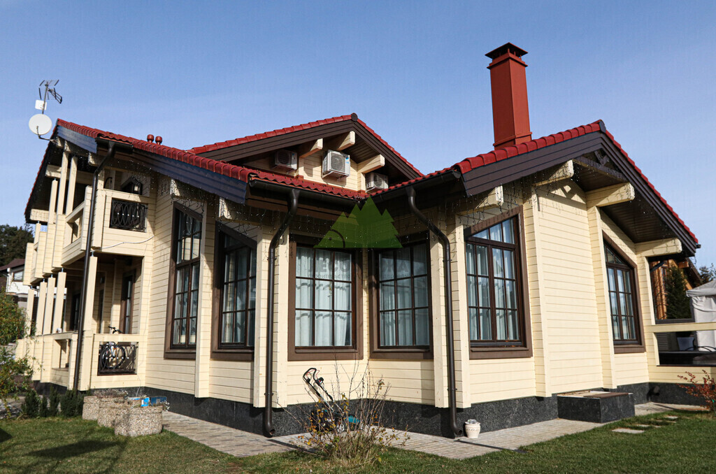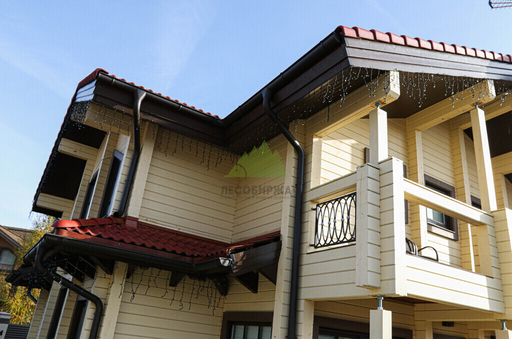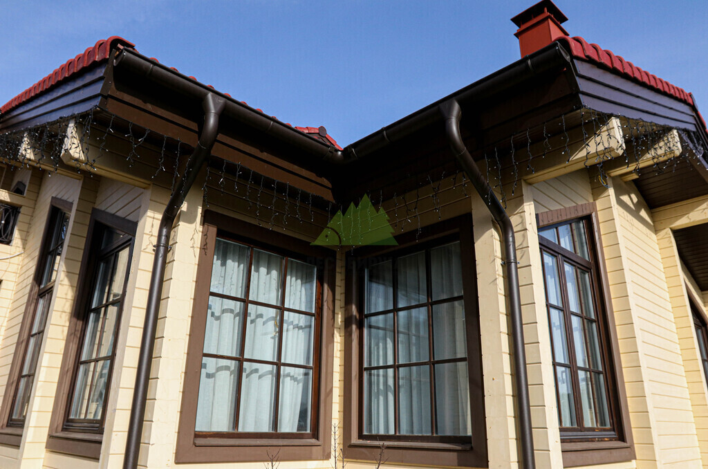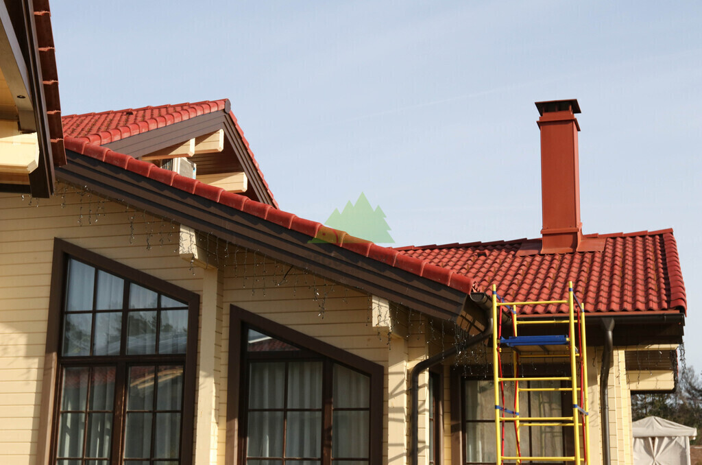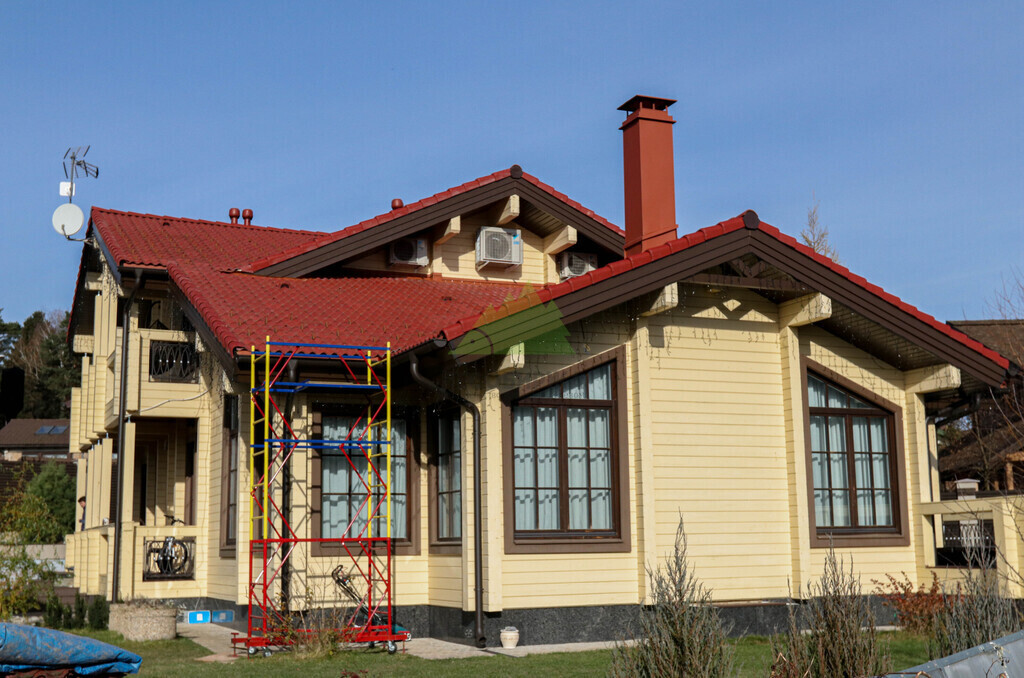 После всех подготовительных работ начался самый ответственный этап – монтаж очищенной и восстановленной натуральной черепицы. Этот процесс требует не только опыта, но и художественного чутья. Каждая плитка должна быть уложена с идеальной точностью, обеспечивая не только эстетическую привлекательность, но и безупречную герметичность кровли. Наши кровельщики, обладающие обширным опытом работы с натуральной черепицей, мастерски справились с этой задачей. Они использовали современные технологии крепления, гарантирующие надежное сцепление каждой плитки и устойчивость всей кровли к ветровым нагрузкам и другим атмосферным воздействиям, столь характерным для климата Санкт-Петербурга и Ленинградской области. В завершение был выполнен монтаж новой водосточной системы. Мы подобрали высококачественные элементы, которые не только эффективно отводят дождевую и талую воду, но и гармонично вписываются в общий архитектурный облик дома, подчеркивая его обновленный вид. Правильно установленная водосточная система критически важна для защиты фундамента, стен и отмостки дома от разрушительного воздействия влаги.