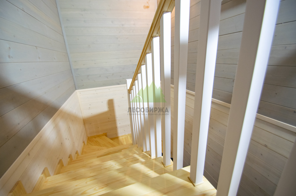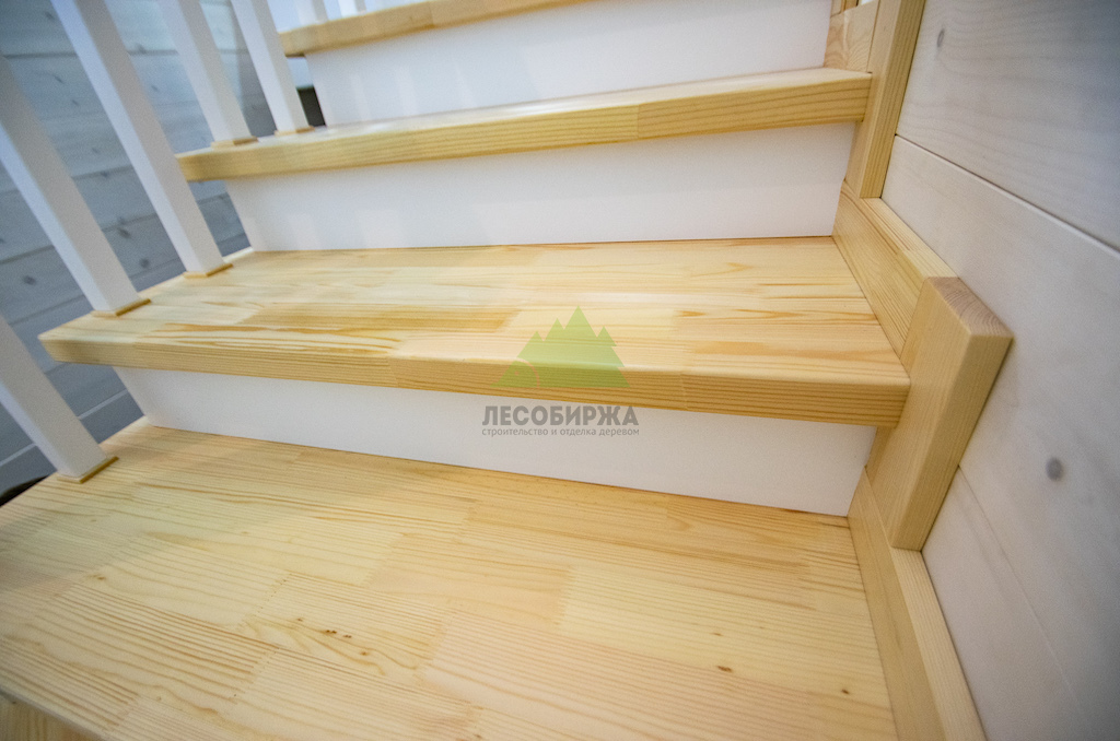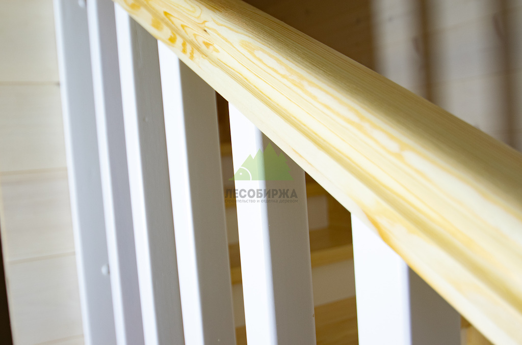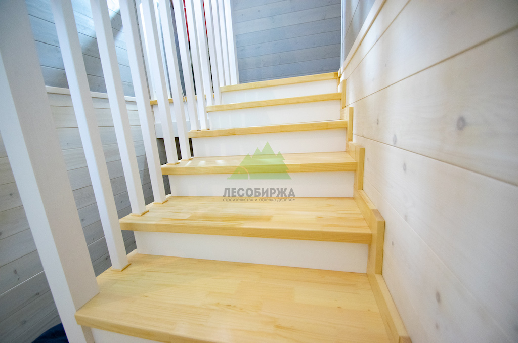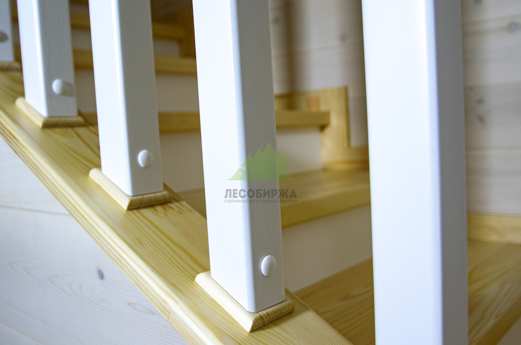 Подступенки и балясины были окрашены матовой белой краской с добавлением того же лака Sayerlack, что обеспечило не только идеальное сцепление и долговечность покрытия, но и создало тот самый "прованский" эффект легкости и свежести. Контраст между теплым оттенком лиственницы и чистым белым цветом сосны придал лестнице неповторимый шарм и элегантность, идеально вписавшись в общий дизайн интерьера. Наши маляры, настоящие виртуозы своего дела, добились безупречного качества покрытия, исключив любые потеки или неровности, что было бы крайне сложно реализовать в домашних условиях.