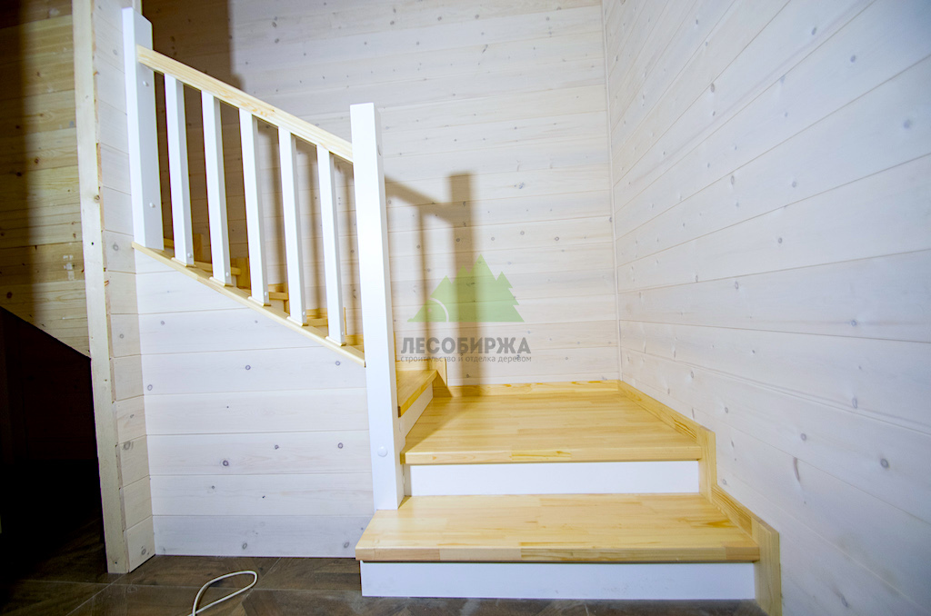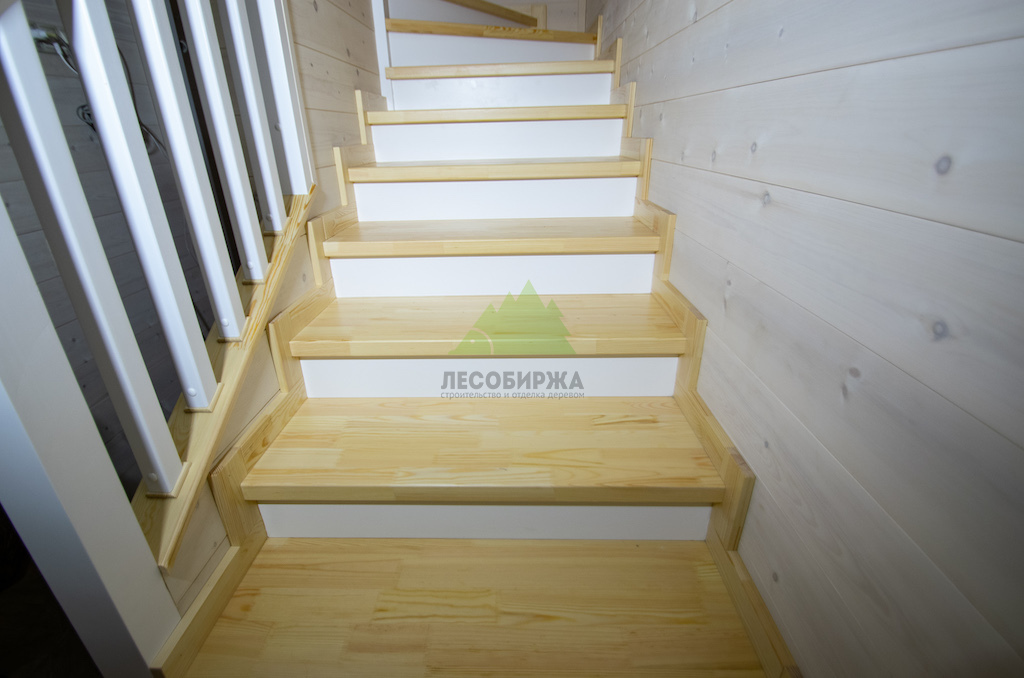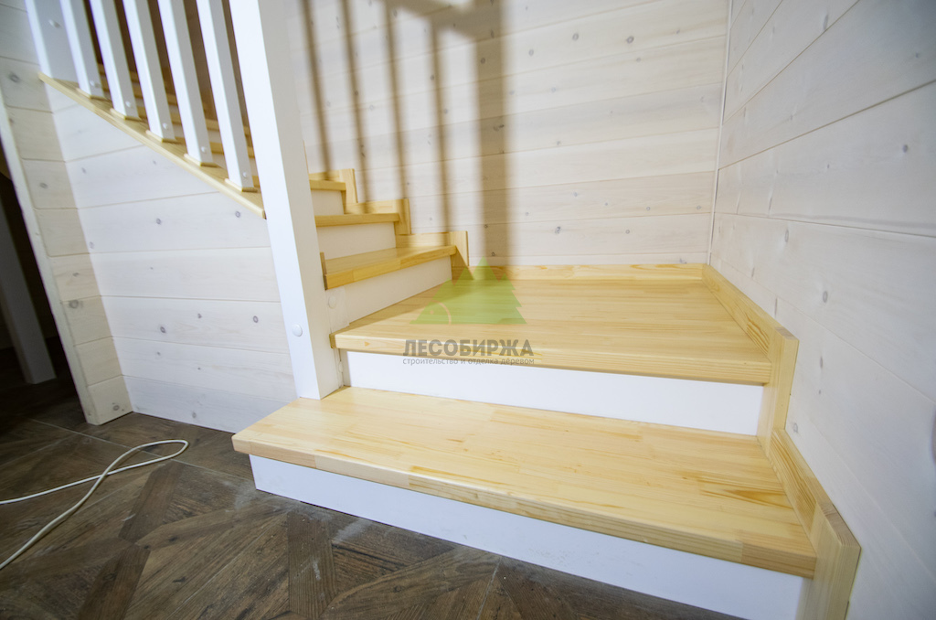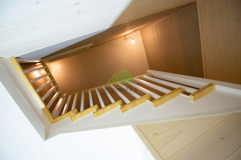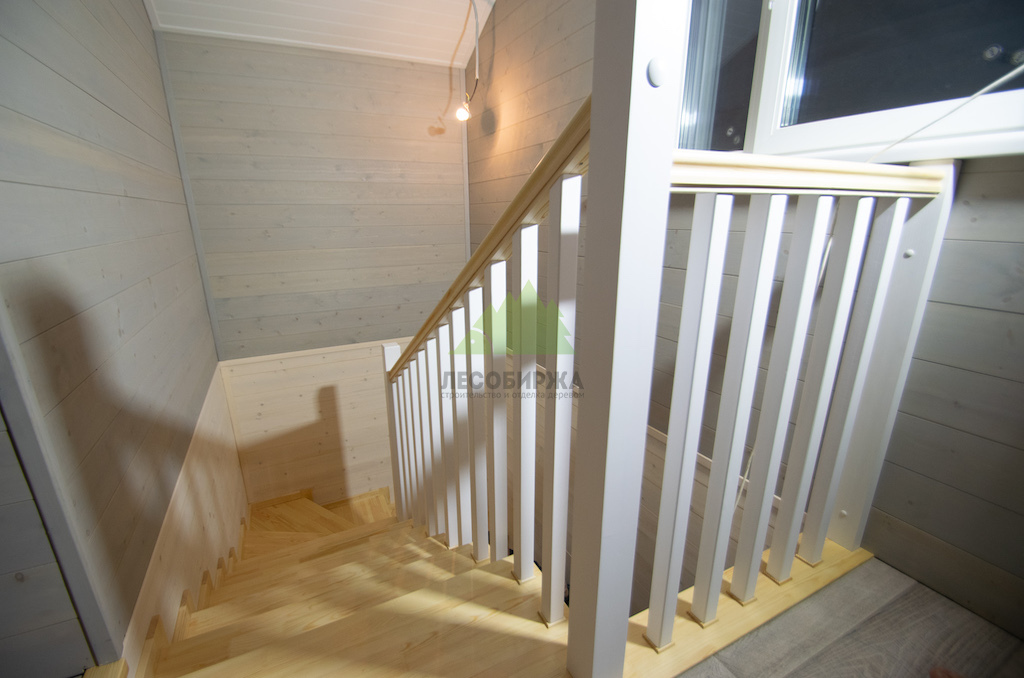 Подступенки и балясины были окрашены матовой белой краской с добавлением того же лака Sayerlack, что обеспечило не только идеальное сцепление и долговечность покрытия, но и создало тот самый "прованский" эффект легкости и свежести. Контраст между теплым оттенком лиственницы и чистым белым цветом сосны придал лестнице неповторимый шарм и элегантность, идеально вписавшись в общий дизайн интерьера. Наши маляры, настоящие виртуозы своего дела, добились безупречного качества покрытия, исключив любые потеки или неровности, что было бы крайне сложно реализовать в домашних условиях.