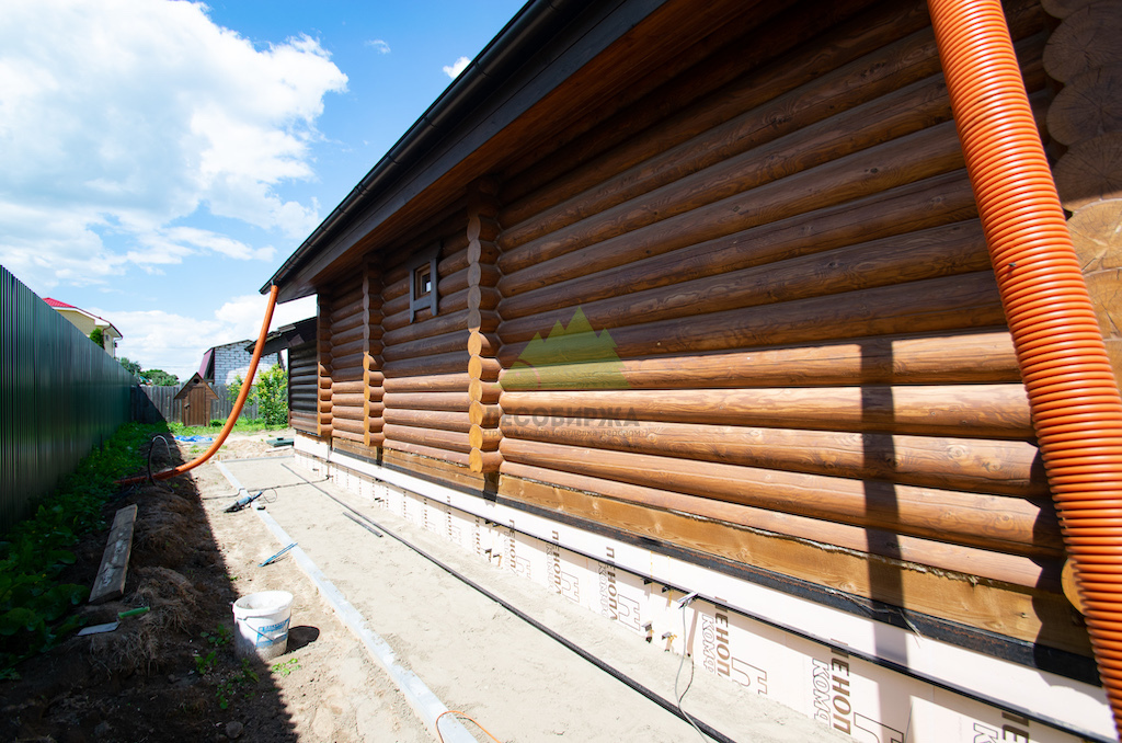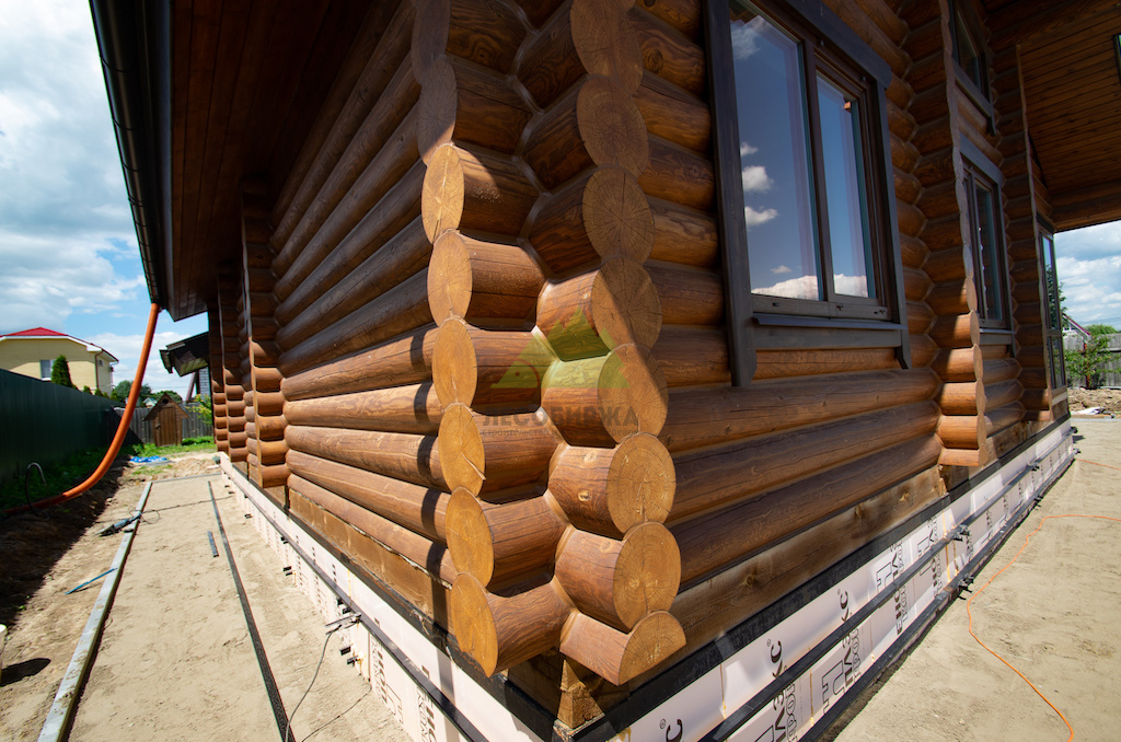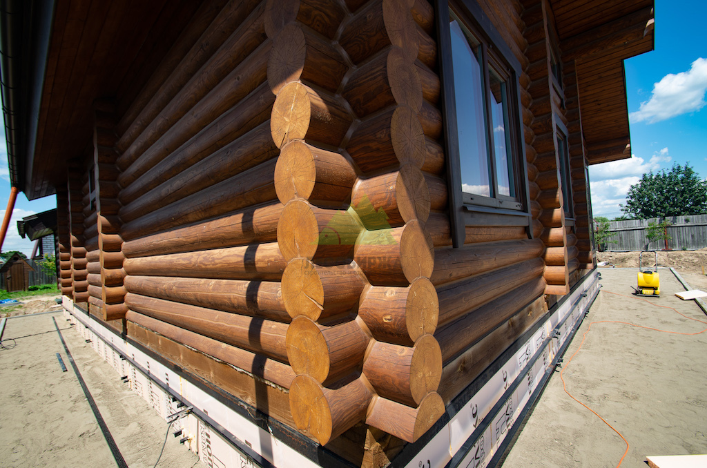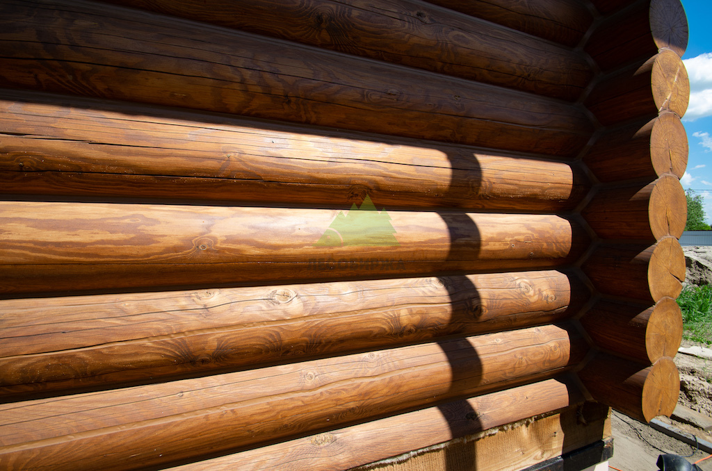 Особое внимание уделялось торцам бревен. Эти участки являются наиболее уязвимыми для проникновения влаги и развития микроорганизмов, так как через них происходит интенсивный обмен влагой с окружающей средой. После шлифовки все торцы были тщательно обработаны и запечатаны специальным герметиком для торцов RENNER AY M 422. Этот состав эффективно "консервирует" капиллярную структуру древесины, предотвращая растрескивание и проникновение влаги, тем самым значительно продлевая срок службы бревна и всего дома в целом.