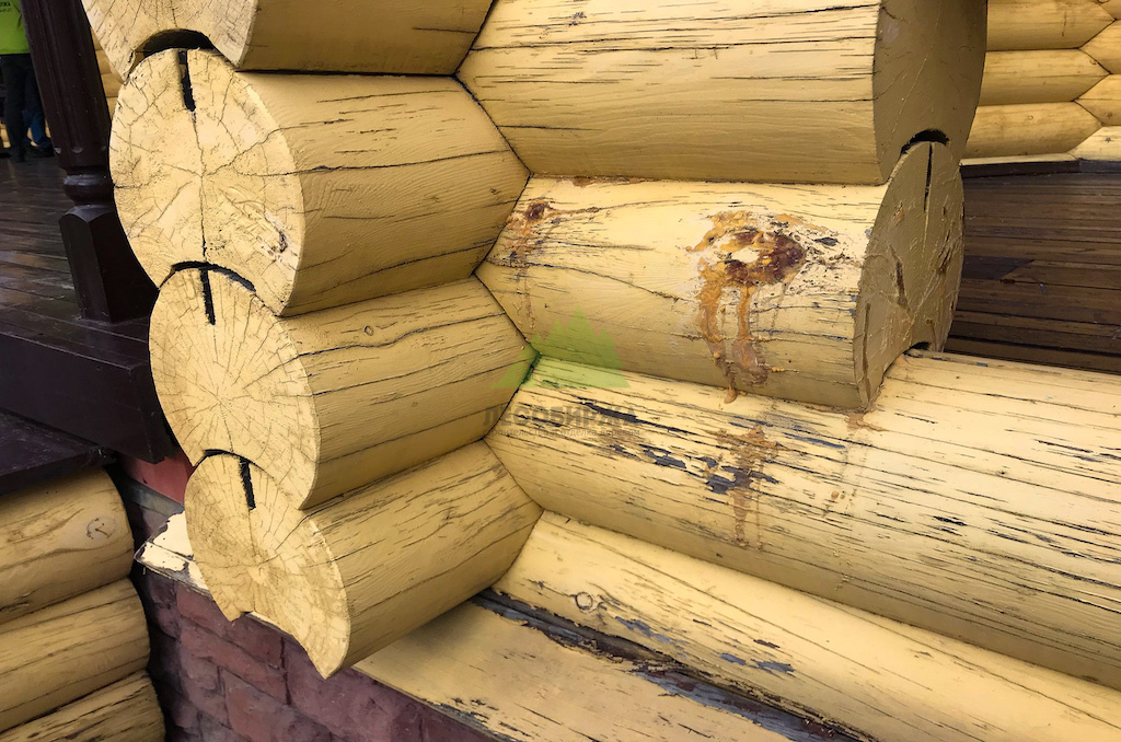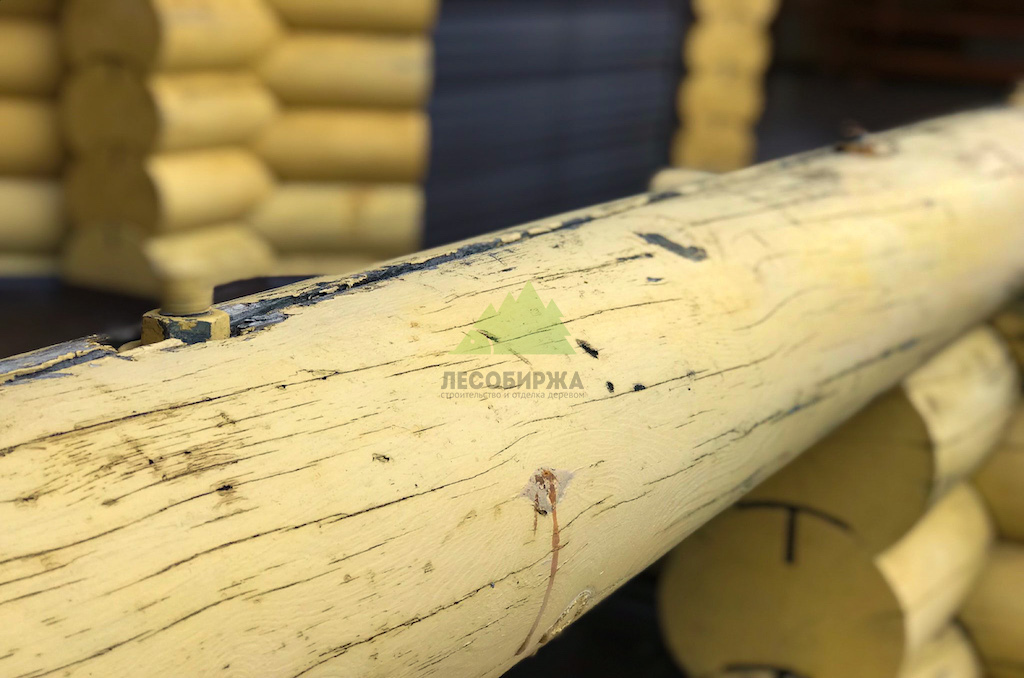 - Множественные мелкие и глубокие трещины в торцевых частях бревен, образовавшиеся из-за перепадов влажности и температур.