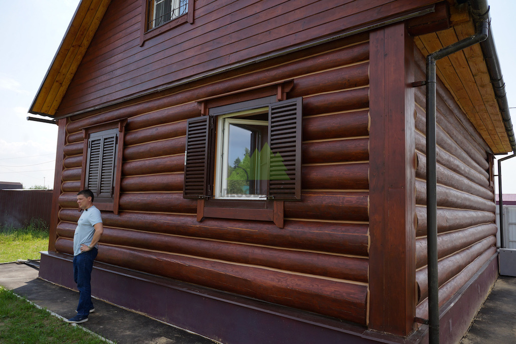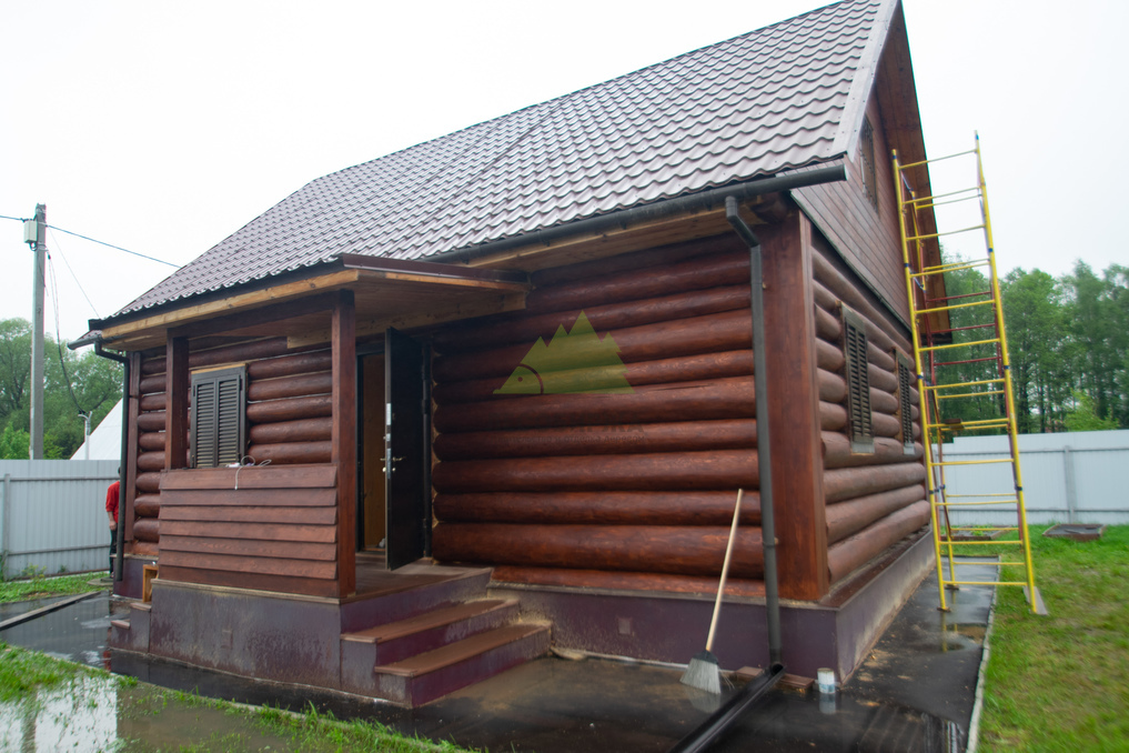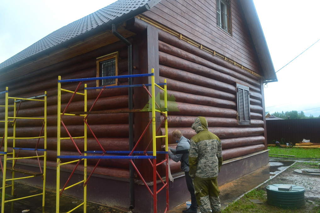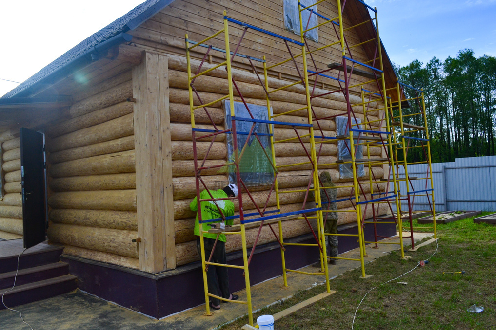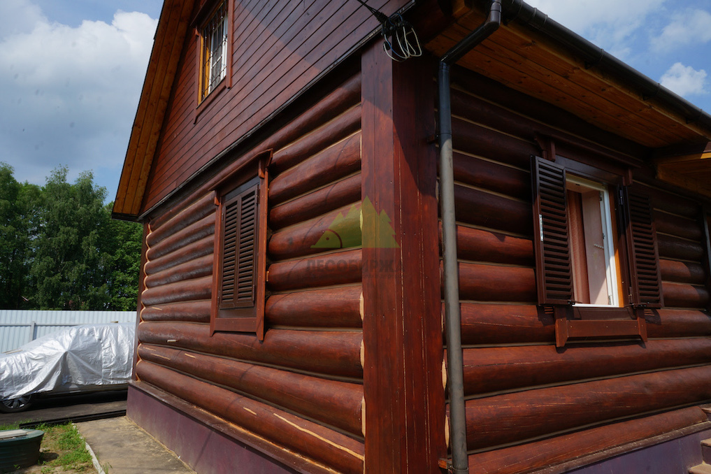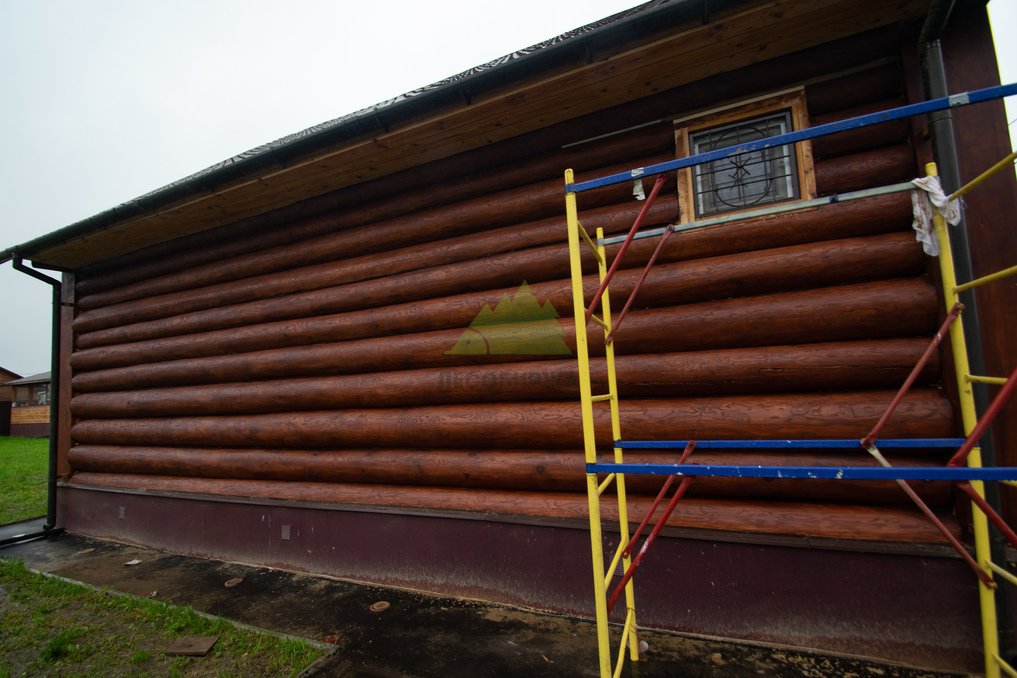 Именно с такой ситуацией столкнулся наш клиент из живописного Ламполова. Его дом, уютный сруб из сосны площадью 140 м², построенный с заботой, через год после самостоятельного покрытия фасада составом с высоким содержанием воска, начал стремительно терять свою привлекательность. Бревна потемнели, поверхность стала липкой и неопрятной. Все природные светлые оттенки сосны исчезли, уступая место неприглядному черному налету. Очевидно, что состав, выбранный клиентом ранее, оказался не только неэффективным, но и пагубным для древесины, создав на поверхности пленку, препятствующую "дыханию" дерева и способствующую развитию микроорганизмов.