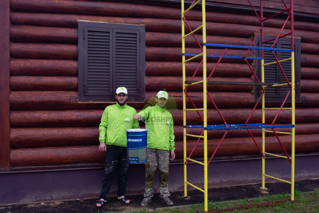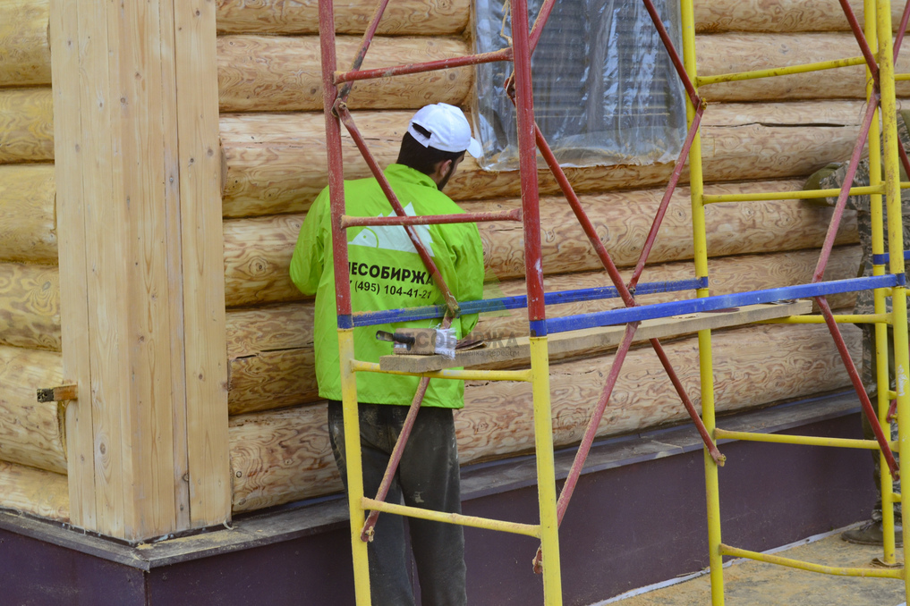 Совет от мастеров Лесобиржи-Спб: Если вы все же решитесь на самостоятельное нанесение герметика, для достижения идеально ровного и аккуратного шва обязательно используйте малярный скотч. Наклейте его сверху и снизу вдоль шва на обрабатываемые бревна или другой пиломатериал. Это значительно упростит процесс и поможет избежать неаккуратных потеков.