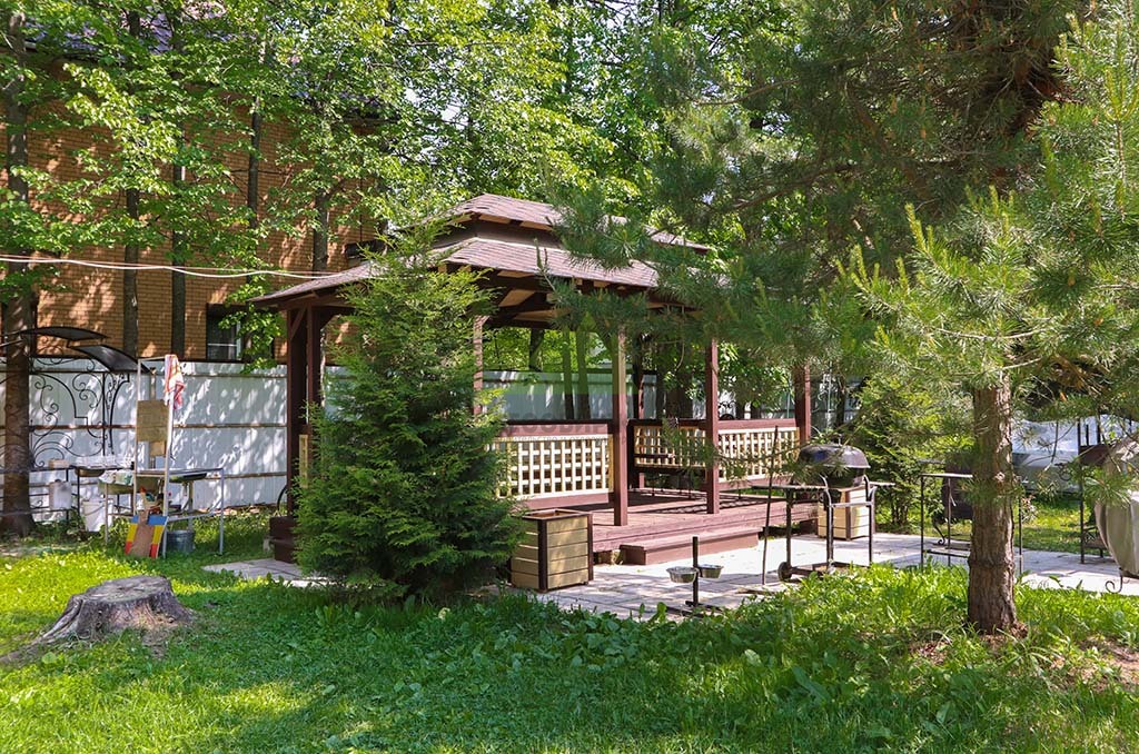 В живописном Луговом, одном из уютных уголков Ленинградской области, перед нашей командой "Лесобиржа-Спб" встала задача не просто обновить, а по-настоящему вдохнуть новую жизнь в усадьбу нашего клиента. Целью было не только преобразить внешний вид трех ключевых деревянных построек — шикарной двухэтажной бани с террасой и балконом из профилированного бруса, роскошной беседки и нескольких хозяйственных помещений, но и обеспечить их долговечную защиту. Главным вызовом стало устранение последствий двадцатилетней давности, когда для наружной отделки был использован яхтный лак — материал, совершенно не подходящий для фасадов и агрессивных погодных условий нашего региона. Это покрытие не только утратило свою эстетику, но и перестало выполнять защитные функции, что требовало комплексного и профессионального подхода.