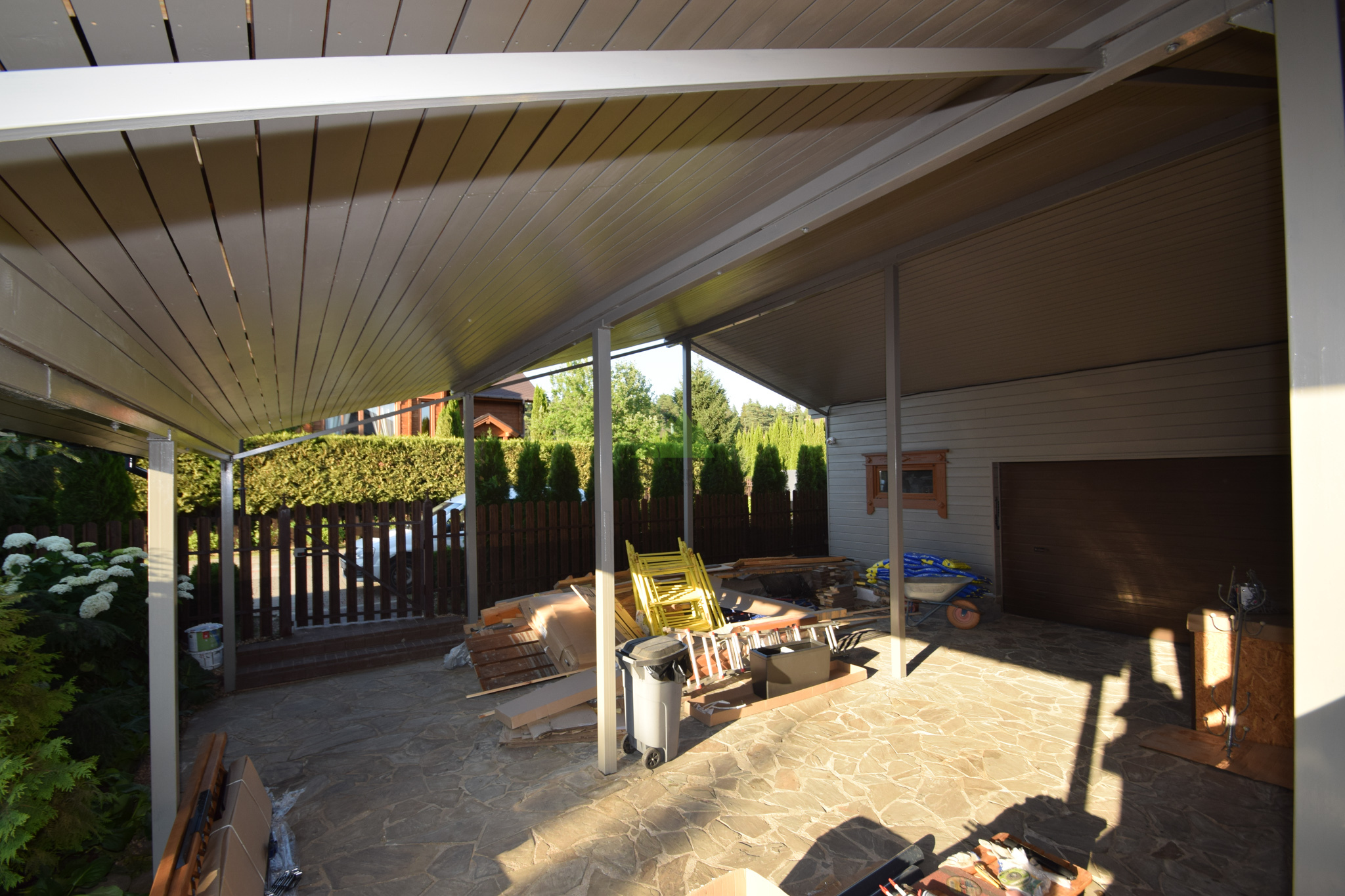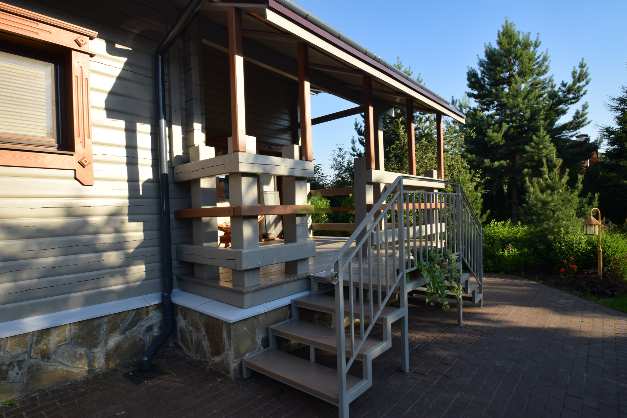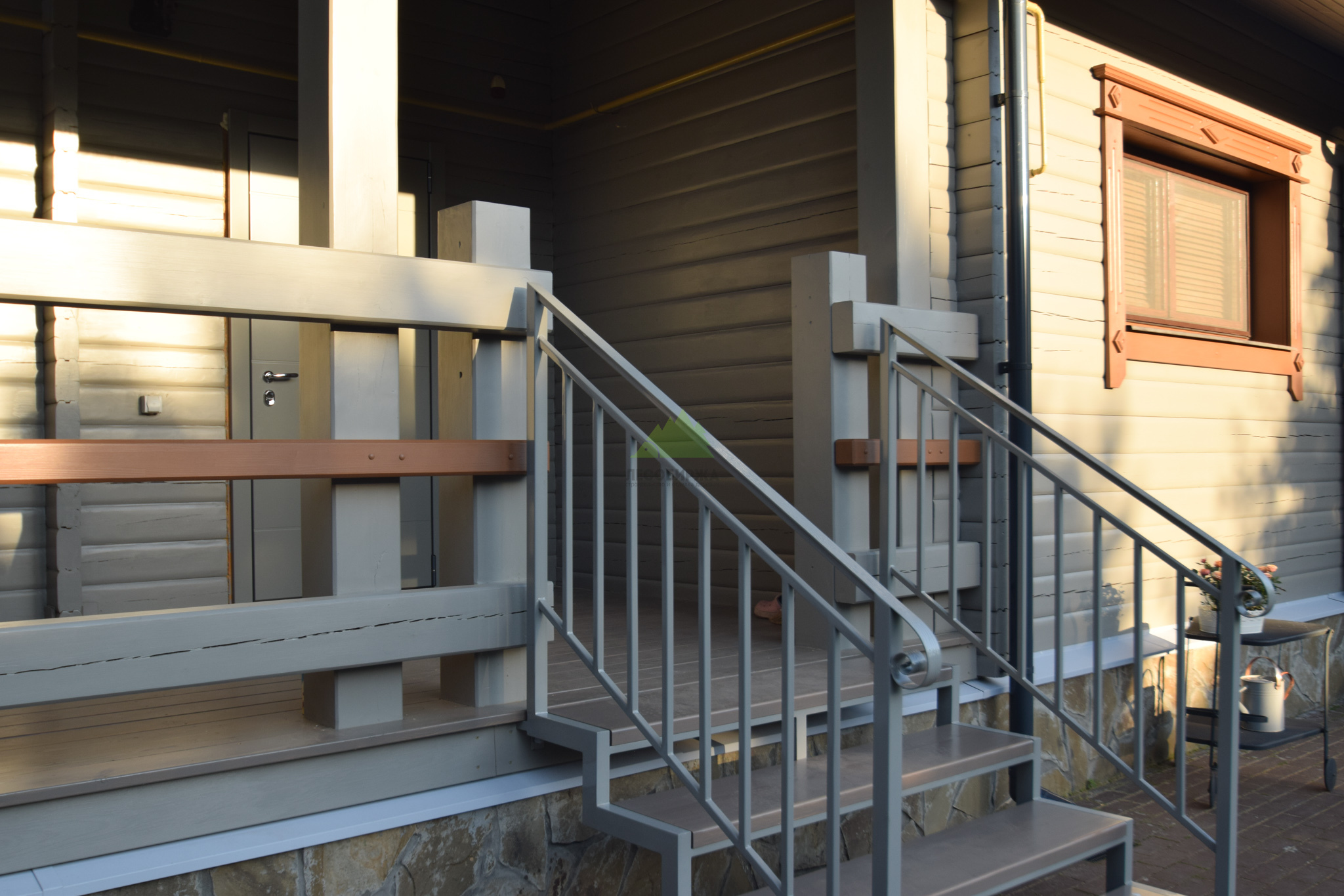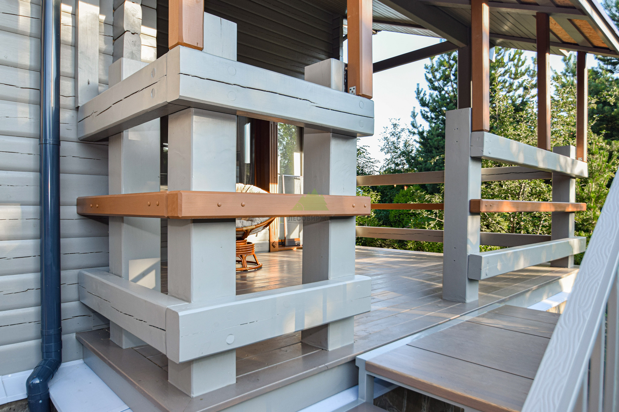 Следующим шагом стала глубокая обработка древесины. В условиях высокой влажности Санкт-Петербурга и Ленинградской области дерево подвержено риску поражения биоорганизмами. Поэтому мы применили антисептические составы глубокого проникновения от Tikkurila, которые надежно защищают древесину от грибка, плесени и насекомых. Выбор продукции Tikkurila не случаен – этот бренд зарекомендовал себя как производитель высококачественных и экологически безопасных материалов, идеально подходящих для наших климатических условий. Антисептическая обработка создает барьер, продлевая срок службы всей конструкции. После этого этапа поверхность была загрунтована специализированным адгезионным грунтом. Грунтовка выравнивает впитывающую способность древесины, улучшает сцепление между деревом и финишным покрытием, а также сокращает расход краски, обеспечивая более равномерное и насыщенное окрашивание. Каждый слой наносился с соблюдением всех технологических пауз, необходимых для полного высыхания.