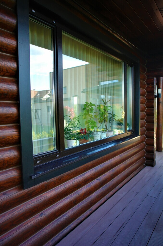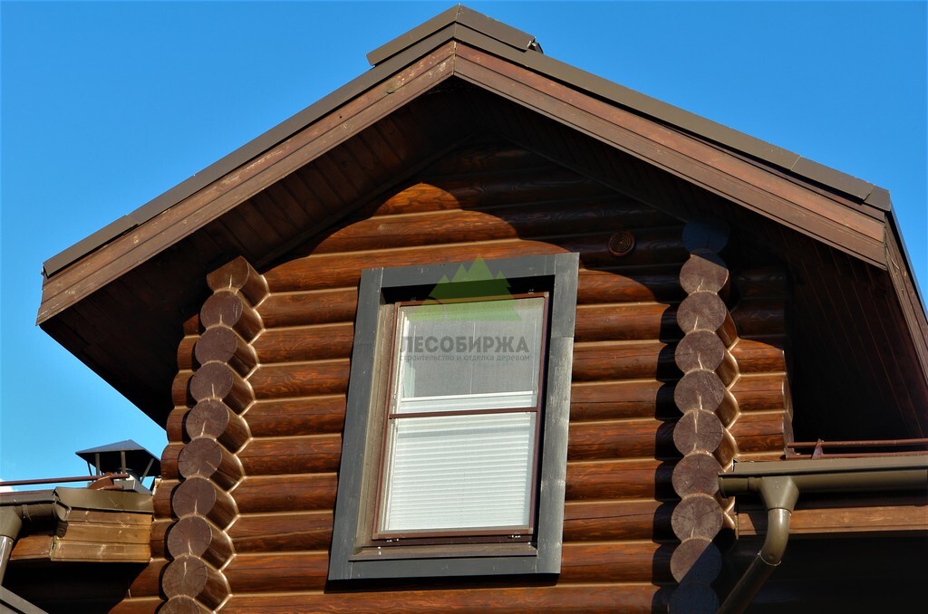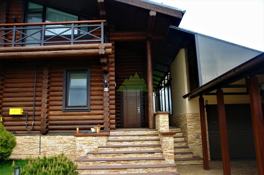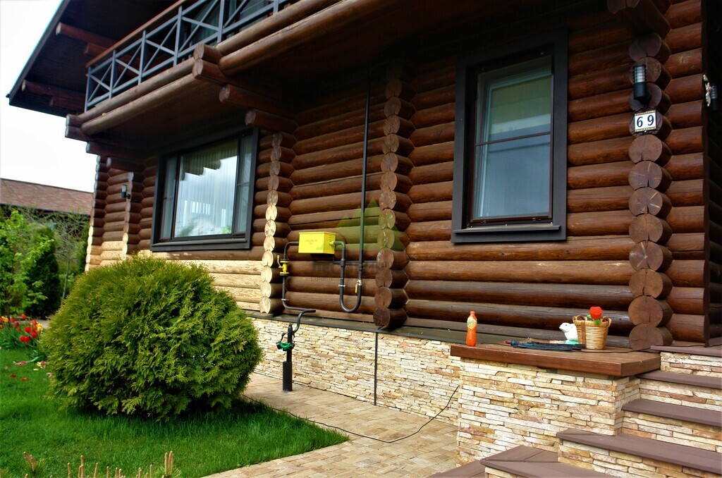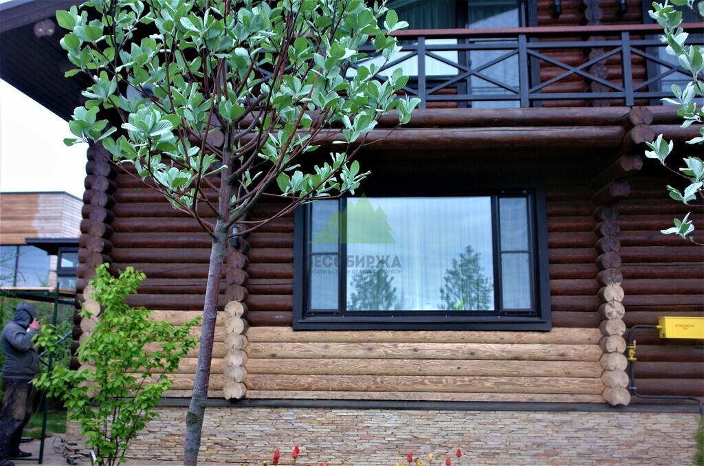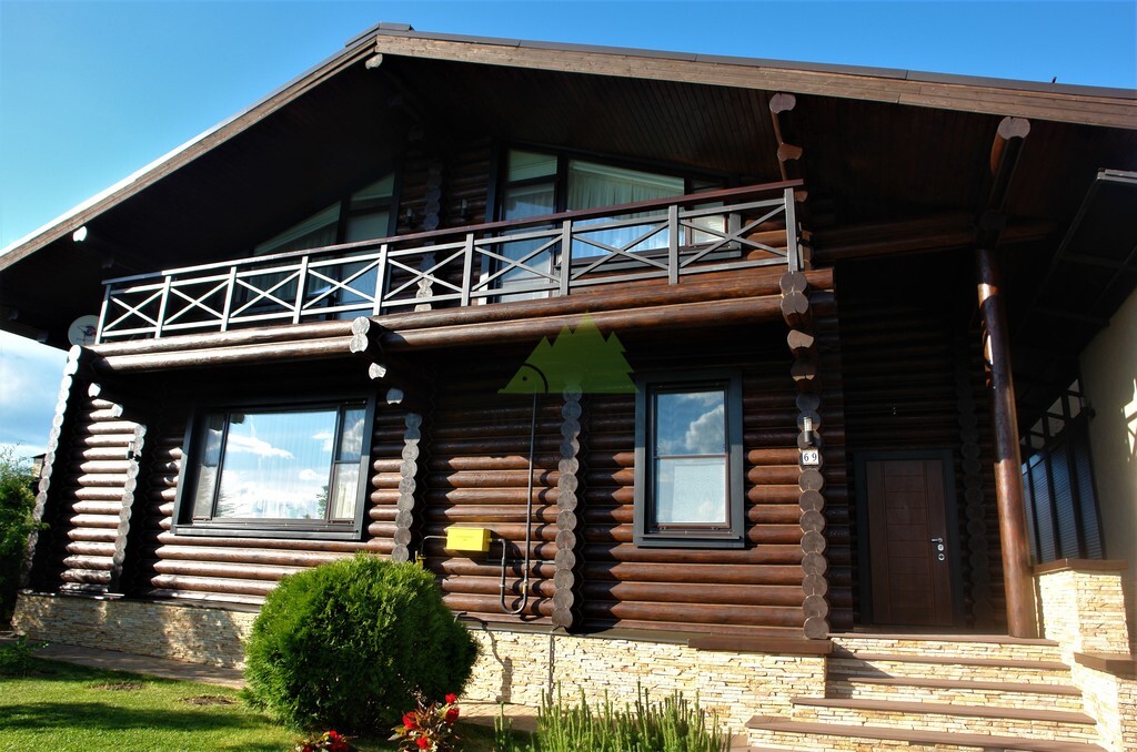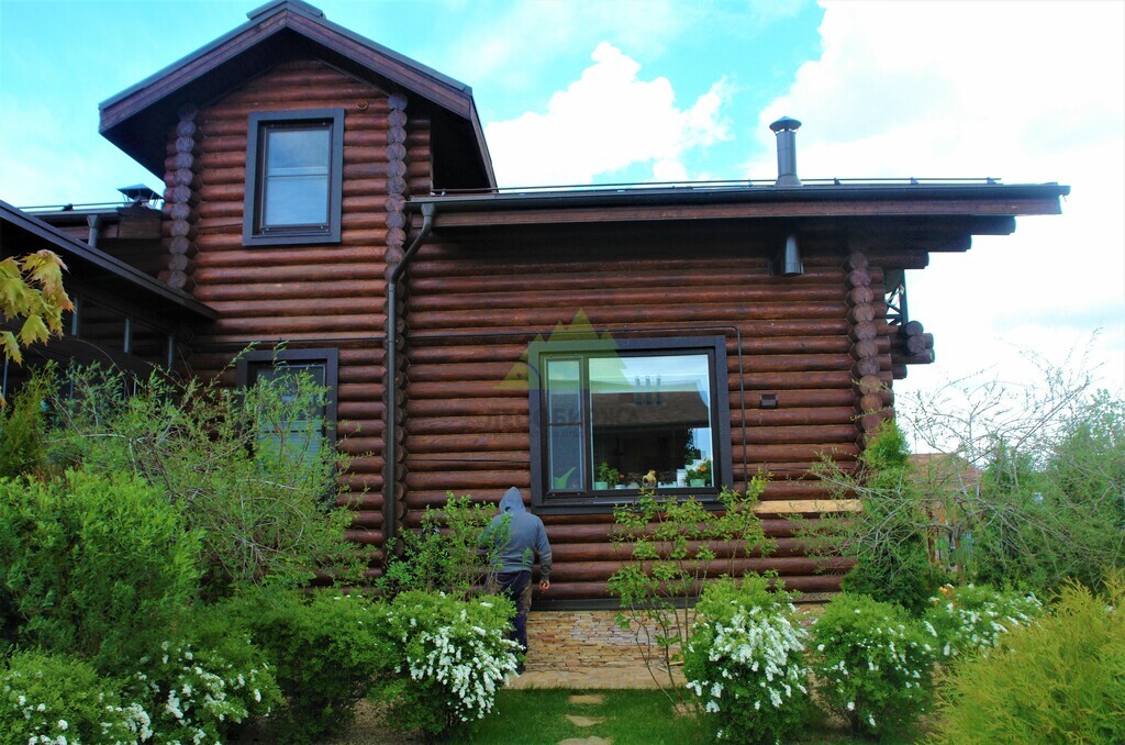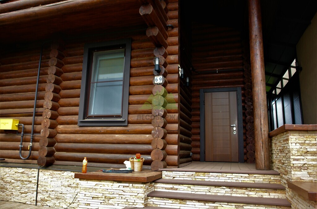 - Повторная покраска финишным слоем гидромасла Renner YS M 300. Для этого дома в Елизавете был выбран глубокий и насыщенный колер в цвете 1824, который превосходно подчеркнул текстуру бревна и придал фасаду благородный, выразительный вид.