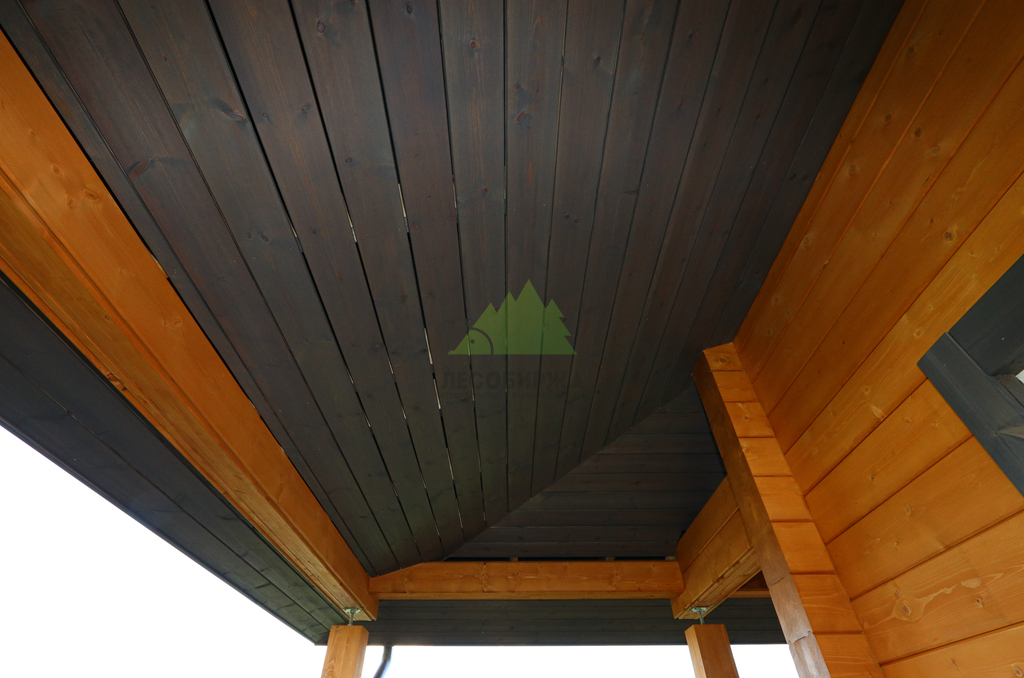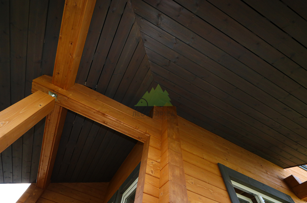 На стены и открытые балки нанесли два слоя гидромасла Tikkurila Pinja W-Oil с колеровкой в оттенок 5070. Работали «мокрым краем», выдерживая регламентируемые интервалы межслойной сушки и контролируя расход, чтобы избежать переукрытия на стыках ламелей и пятнистости на больших плоскостях.