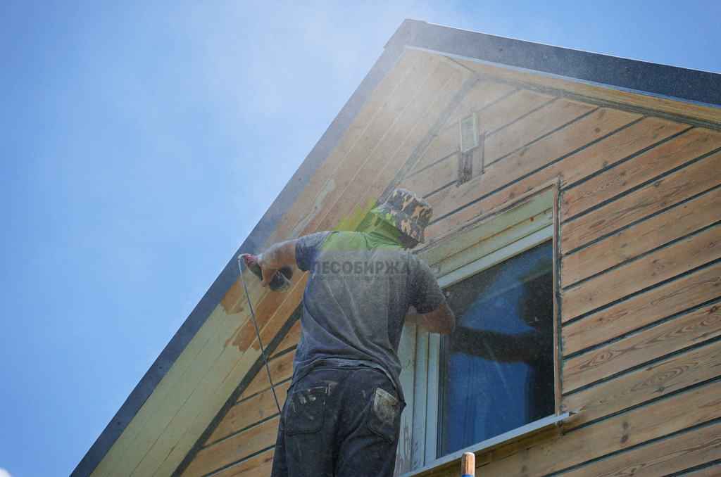 Главная ошибка прежней покраски — слабая подготовка и, похоже, бытовые материалы. Мы полностью перешлифовали “имитацию бруса”, загрунтовали Renner YL-M282/NTR и закрыли укрывной YO 30C301/C48 распылением. Такая связка держит цвет и геометрию, а межслойная шлифовка убирает ворс, чтобы фасад выглядел как с конвейера. При правильной эксплуатации эта система спокойно отрабатывает до десятка лет, а гарантию по договору мы даем до 5 лет.