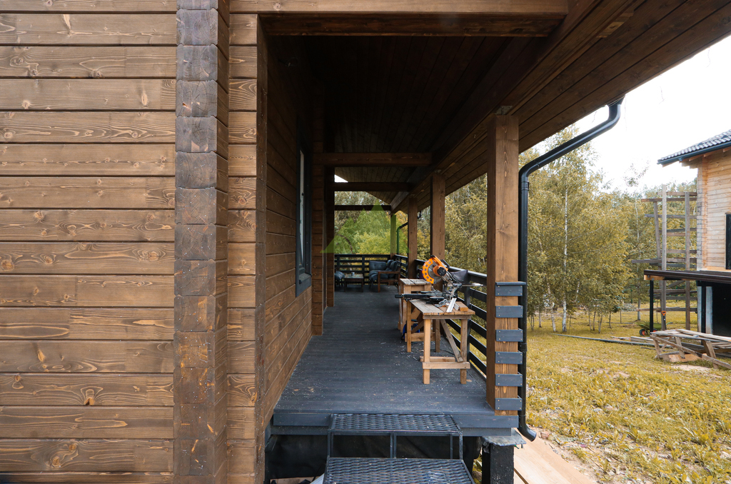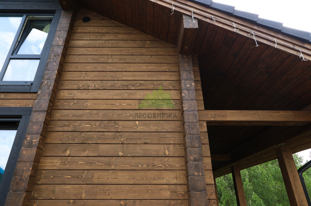 В результате был получен фасад с ровным, глубоким цветом и матовой фактурой, подчеркивающей натуральность дерева. Применение качественных материалов и соблюдение технологии гарантируют долговременную защиту от ультрафиолета, влаги и других атмосферных воздействий.