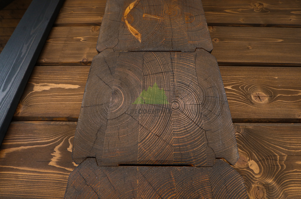 - Обработка торцов: Для защиты наиболее уязвимых мест — торцевых срезов древесины — на них была нанесена специальная мастика Renner YL C203. Этот этап критически важен для предотвращения впитывания влаги и растрескивания древесины.