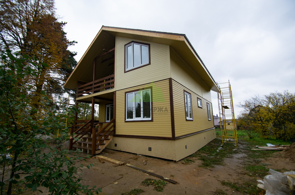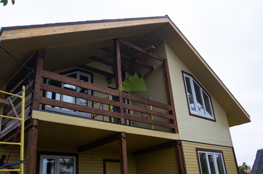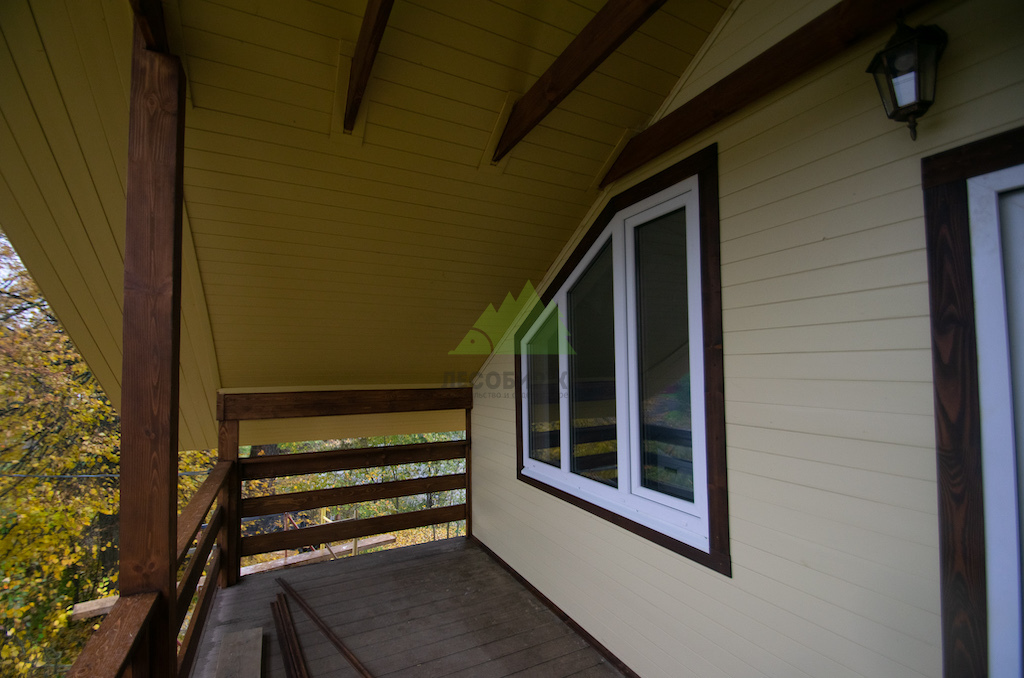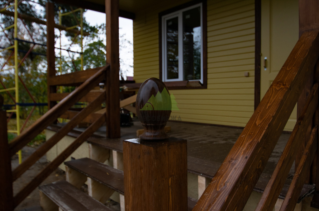 Особое внимание было уделено архитектурным деталям, которые требовалось выделить. Наличники окон и дверей, перила балкона, накладки на углы дома и элементы декоративного обрамления были покрыты маслом Renner ТМ 5077. Чтобы придать этим элементам глубокий, насыщенный цвет и создать эффектный контраст с основными светлыми тонами фасада, мы использовали двойную порцию колера (200%), добившись насыщенного темно-коричневого оттенка. Масло Renner не только подчеркивает естественную красоту древесины, но и обеспечивает ей дополнительную защиту от влаги и УФ-излучения, продлевая срок службы этих важных элементов. Великолепное сочетание темно-коричневого и желтого цветов придало дому завершенный, элегантный вид, подчеркнув его финский стиль и индивидуальность.