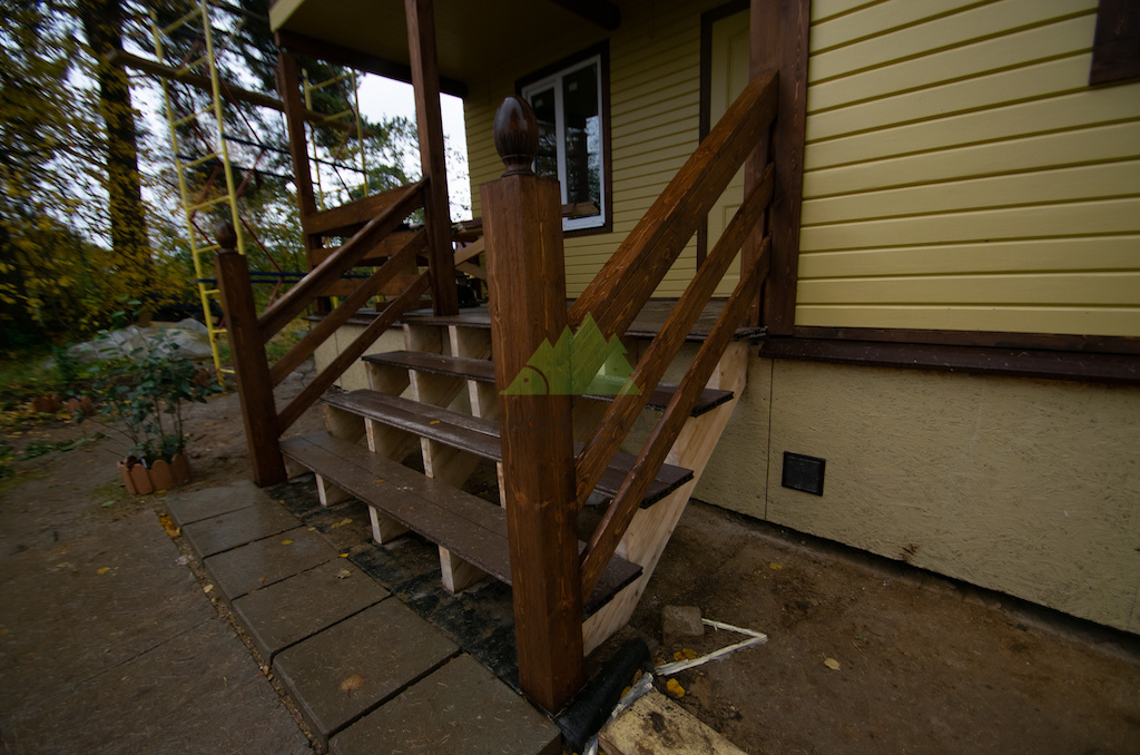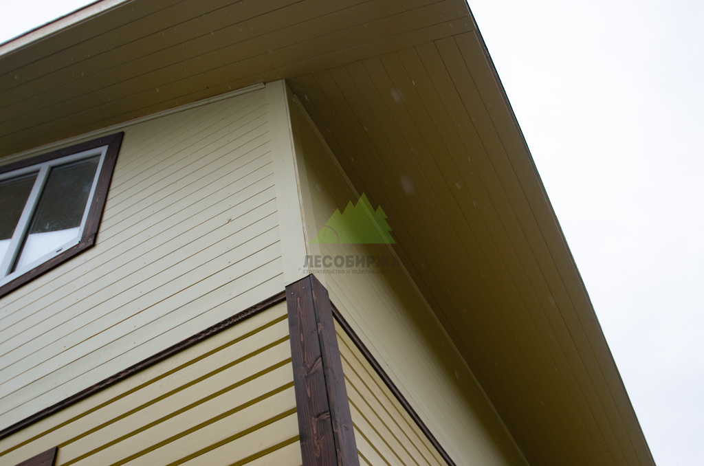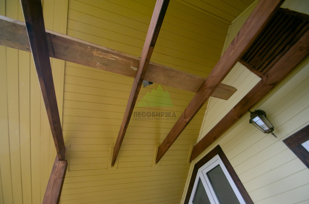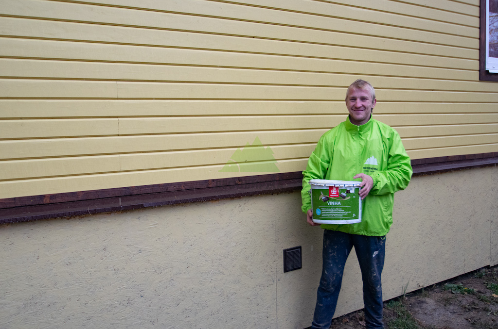 Выбор финишного покрытия пал на краску Tikkurila Vinha – укрывную, но при этом позволяющую сохранить благородную текстуру древесины. Vinha отличается высокой эластичностью, что предотвращает её растрескивание при естественных деформациях дерева, и превосходной стойкостью к атмосферным воздействиям, что особенно актуально для переменчивого климата Ленинградской области. Краска наносилась в два слоя, что гарантировало насыщенный цвет и максимальную защиту.