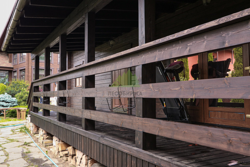 Помимо самой бани, особое внимание было уделено преображению прилегающей к ней террасы и всех декоративных элементов. Терраса, как правило, подвергается еще более интенсивному воздействию внешней среды, поэтому её защита требовала не менее тщательного подхода. Ограждения, ступени и другие элементы были обработаны по той же технологии, что и фасад бани, что обеспечило не только единый стилистический ансамбль, но и равноценную защиту всех деревянных поверхностей. Теперь весь комплекс выглядит как новенький, радуя своих хозяев роскошным, благородным и, главное, долговечным темным оттенком, который так гармонично вписался в общий дизайн участка у реки Кобона.