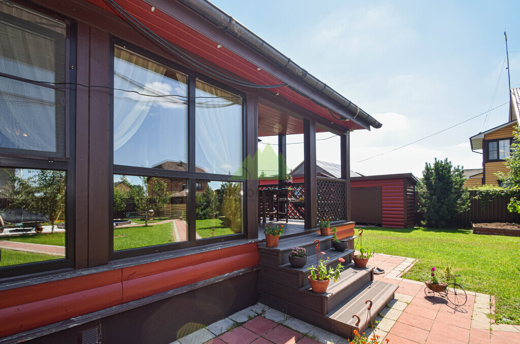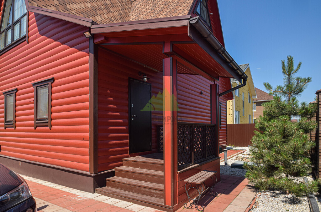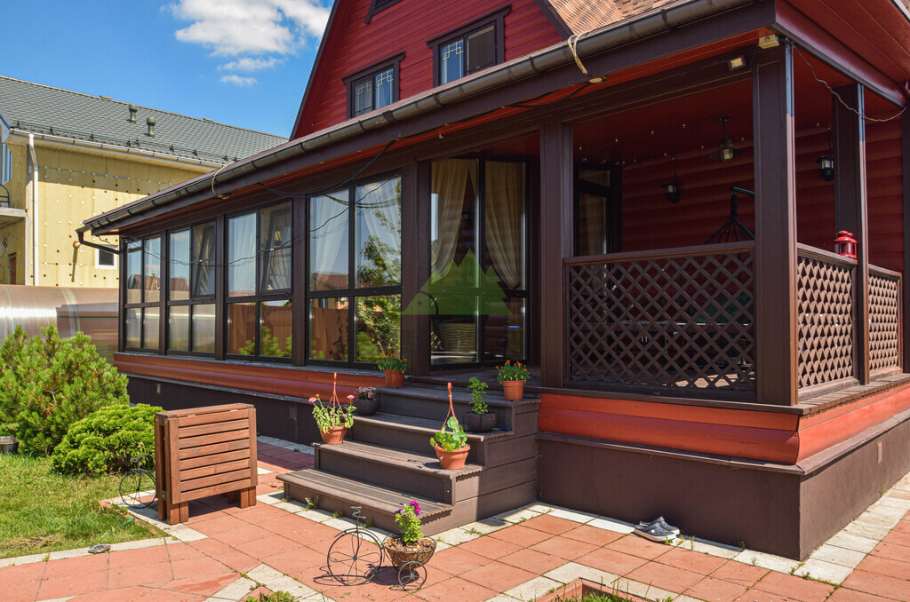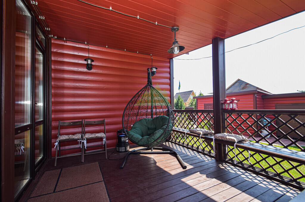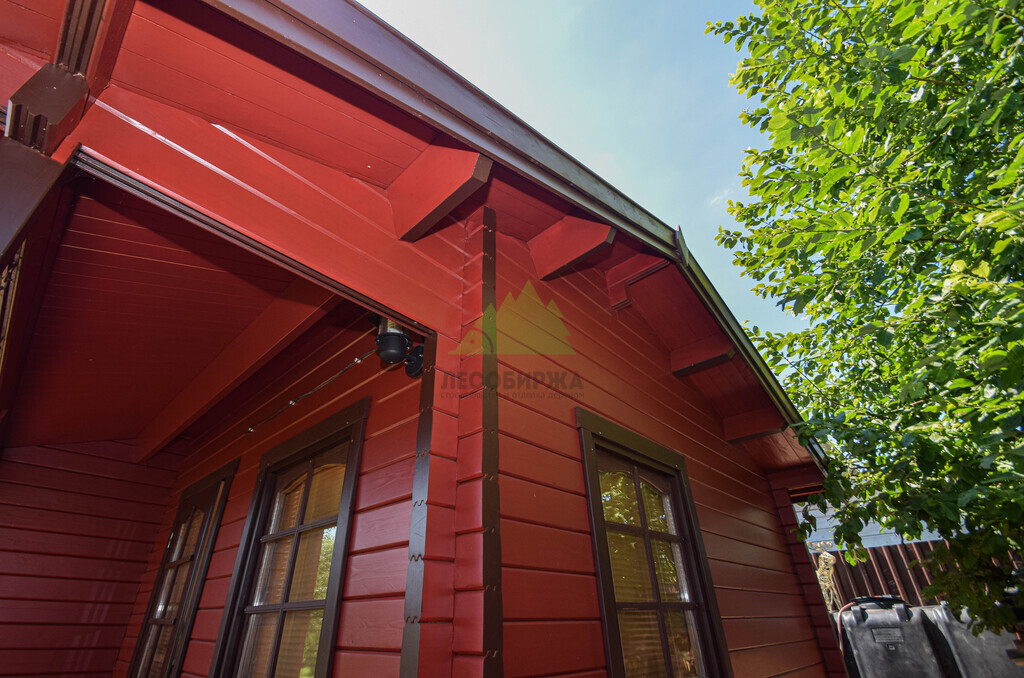 Результат превзошел ожидания заказчика. Качество выполнения работ и безупречный внешний вид обновленного фасада дома были высоко оценены, что стало лучшим подтверждением нашего профессионализма. Как это часто бывает в практике Лесобиржи-Спб, высокая степень удовлетворенности клиента побудила его расширить объем работ. Вслед за домом, тем же высококачественным составом Tikkurila Vinha были комплексно преображены все остальные деревянные строения на участке: хозяйственный блок, совмещенный с гаражом, уютная хозяйская баня и элегантная закрытая беседка. Все постройки теперь выглядят как единый архитектурный ансамбль, выполненный в одном стиле и цвете. Насыщенный вишневый цвет, выбранный для основных поверхностей, и темно-коричневый для торцов, придал объектам выразительность и глубину, подчеркнув их индивидуальность и гармоничное слияние с окружающим ландшафтом Горки-Лэнд 4.