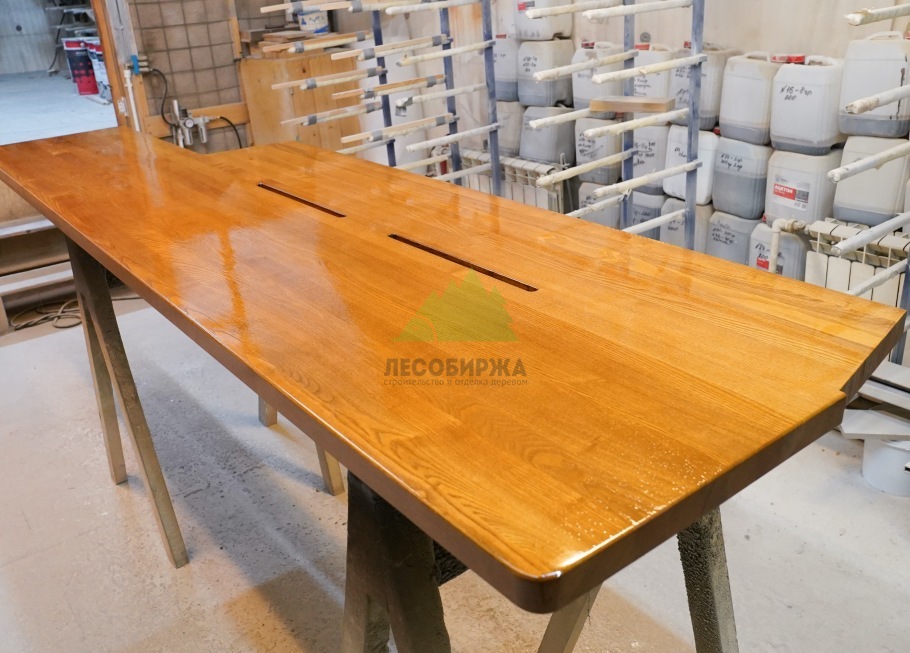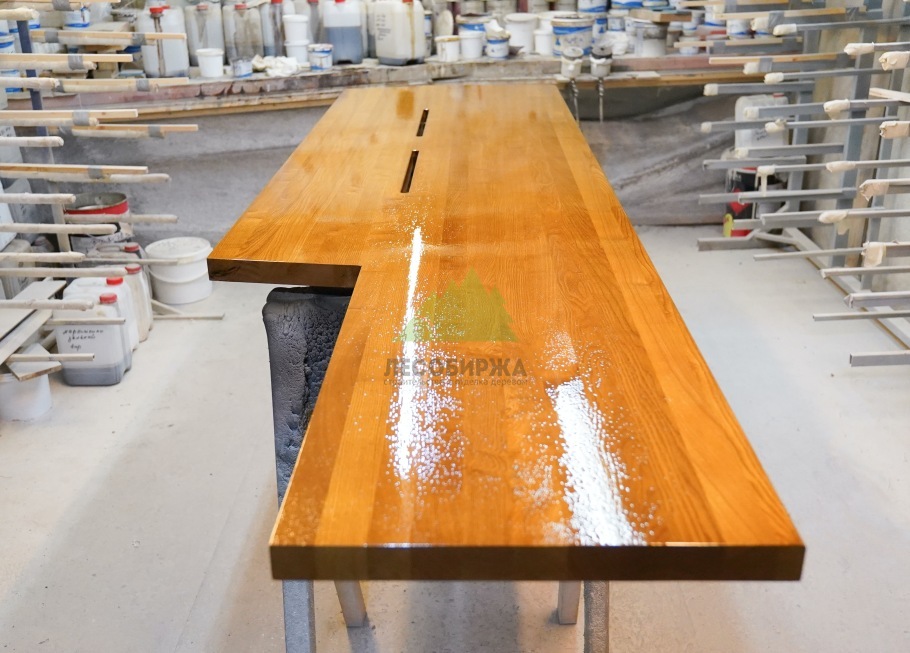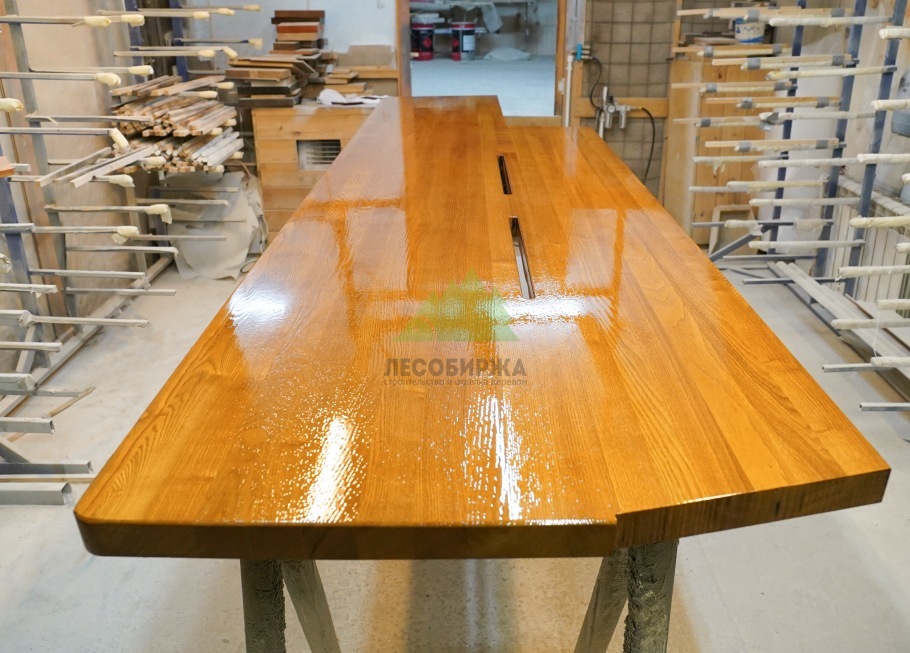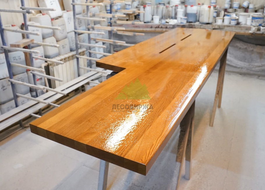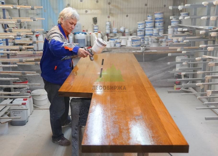 В Лесобиржа-Спб мы не заканчиваем работу, пока не убедимся в ее безупречности. После нанесения всех слоев лака и полного высыхания изделие проходило тщательный контроль качества. Наши эксперты внимательно осматривали каждый миллиметр поверхности под специальным освещением, проверяя отсутствие мельчайших дефектов, равномерность блеска и соответствие заявленным характеристикам. Только после того, как подоконник-столешница был признан идеальным, он был готов к следующему этапу.